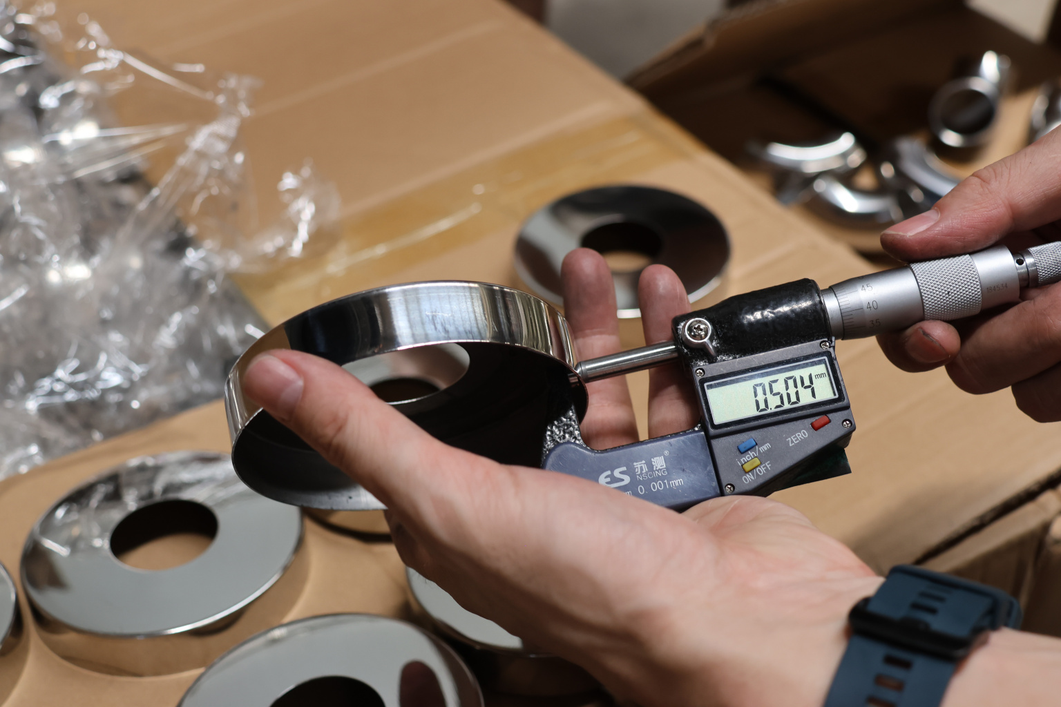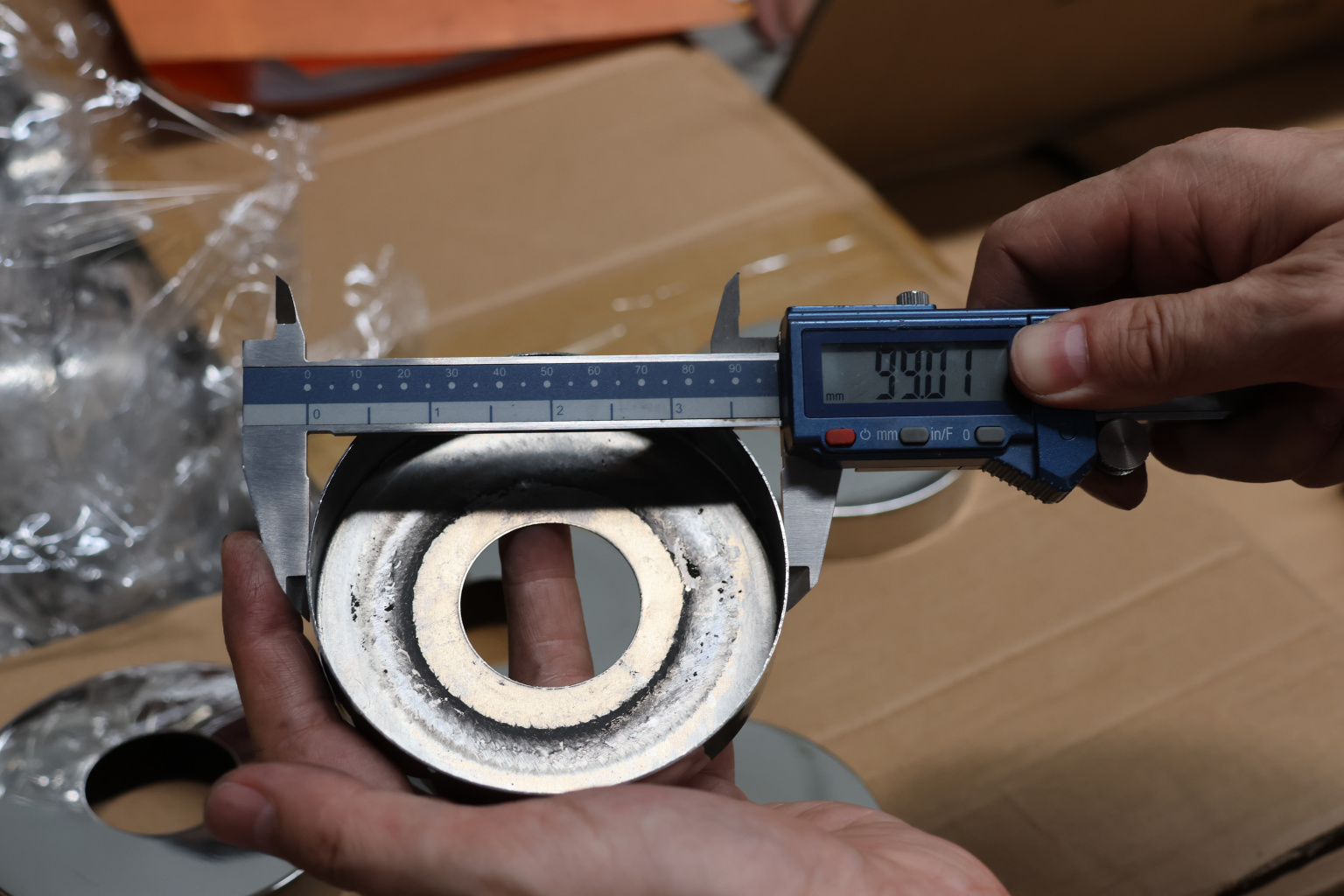Низ стойки Ø38.1 мм, S=0,4 мм, внешний Ø90х12 мм, полированный 400# AISI 201 k007-8 купить в Новосибирске