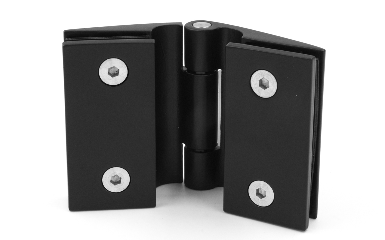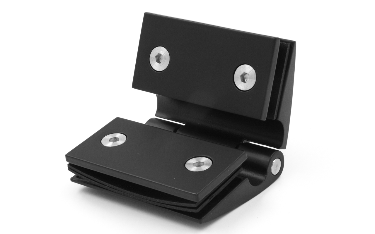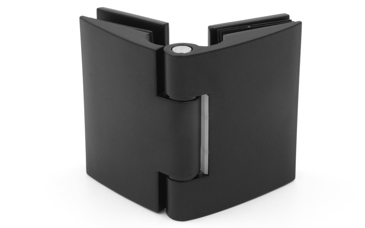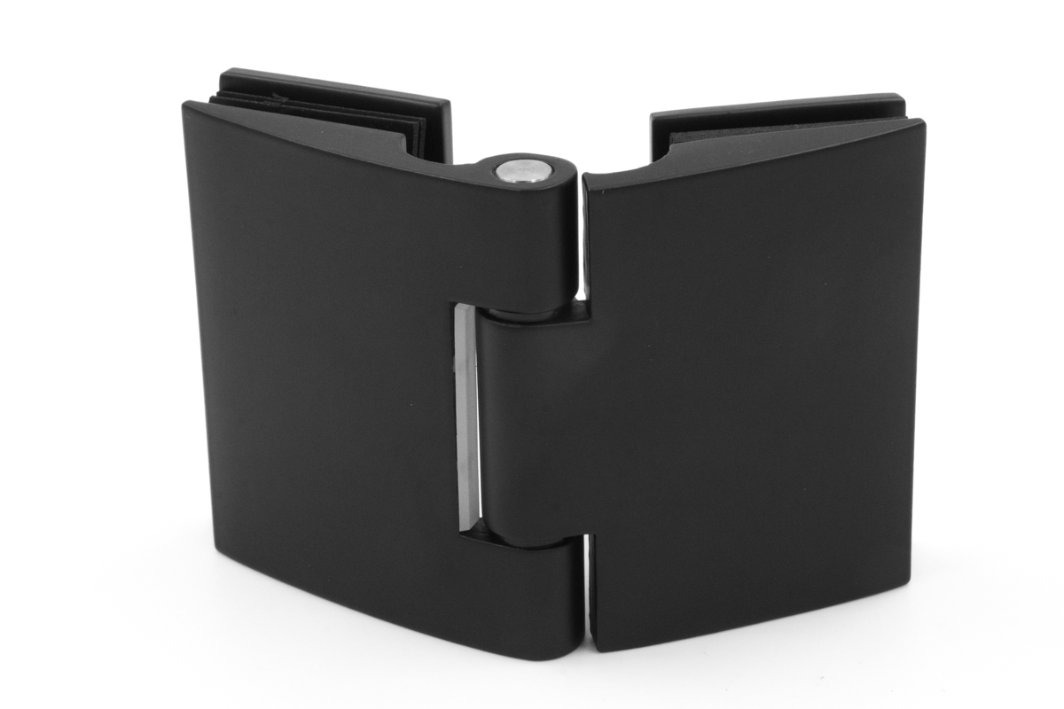 Петля для душевой кабины стекло-стекло 180°, без реза уплотнителя, черный. Выдерживает нагрузку 35 кг на две петли. Марка стали - AISI 304