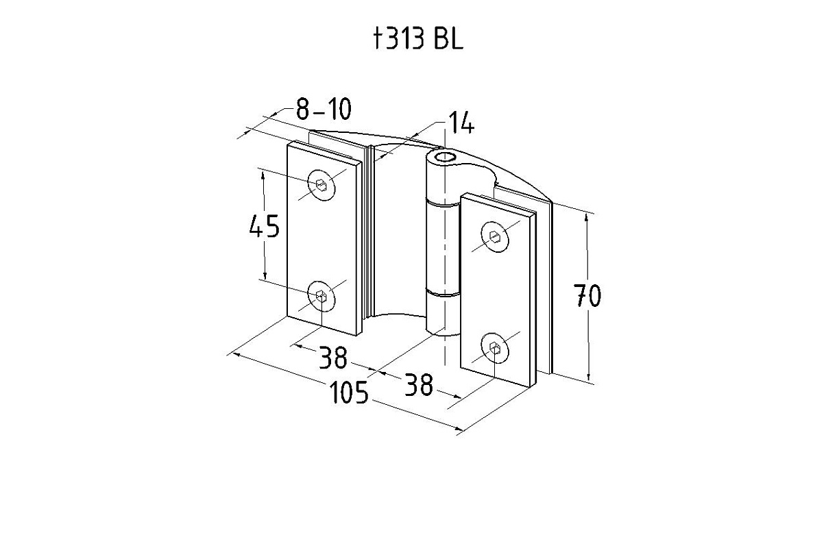 Петля для душевой кабины стекло-стекло 180°, без реза, нержавеющая сталь AISI 304, черная t313 BL