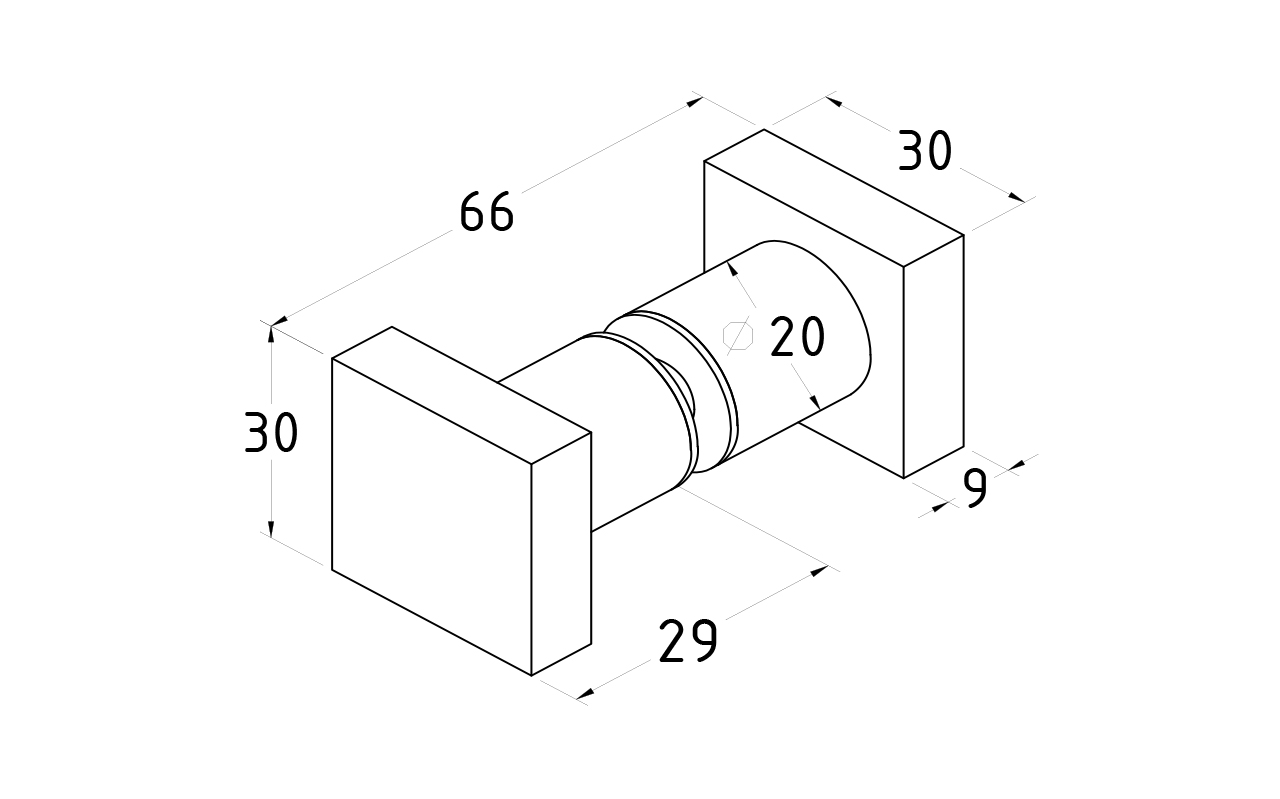 Ручка-кноб квадратная, для стекла 6-12мм, черная