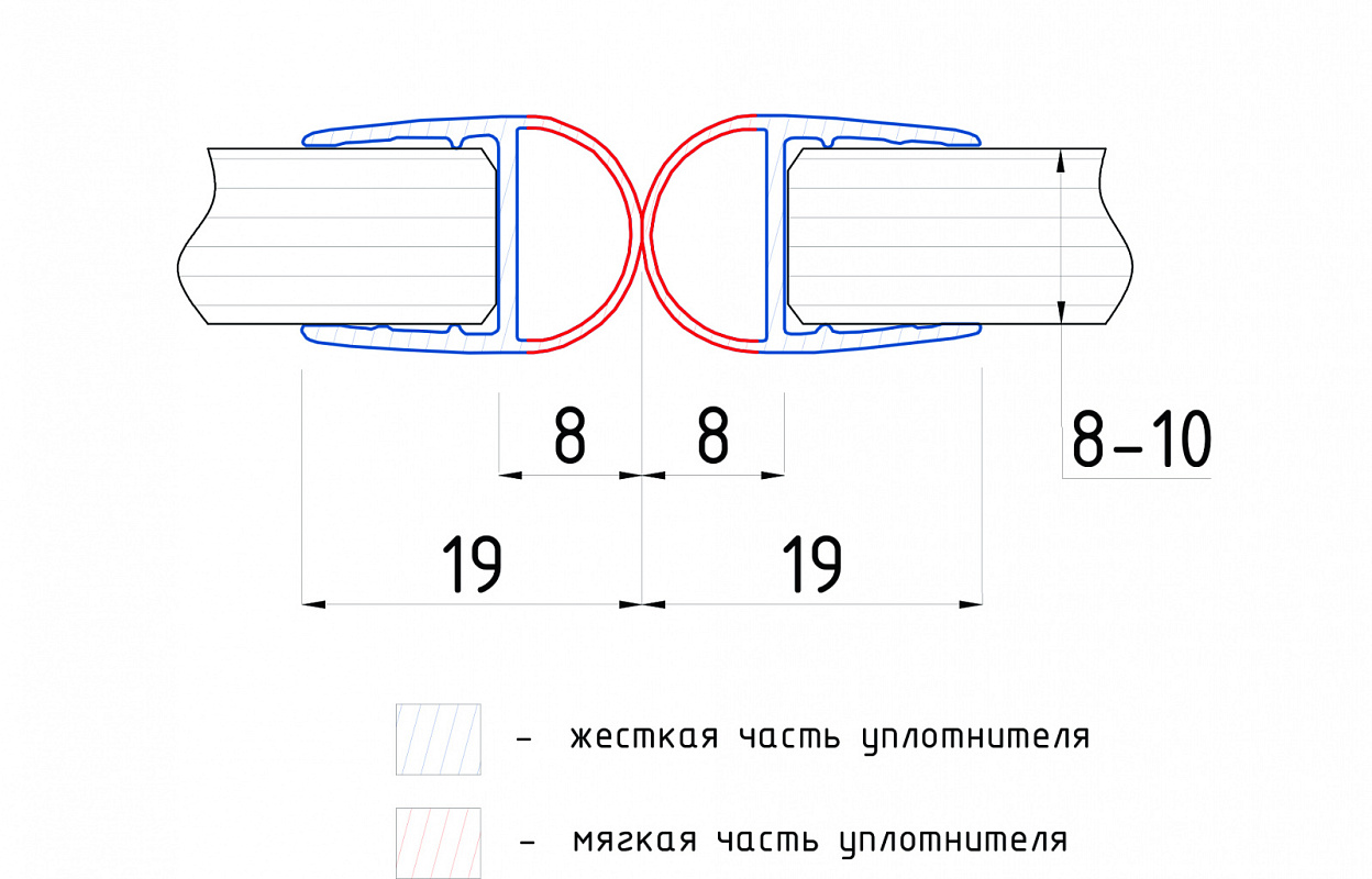 Монтируется по всему периметру стеклянного листа. Обеспечивает максимально плотное сцепление створок. Гарантирует защиту от растрескивания или деформации, а также предотвращает механическое столкновение двух полотен.
