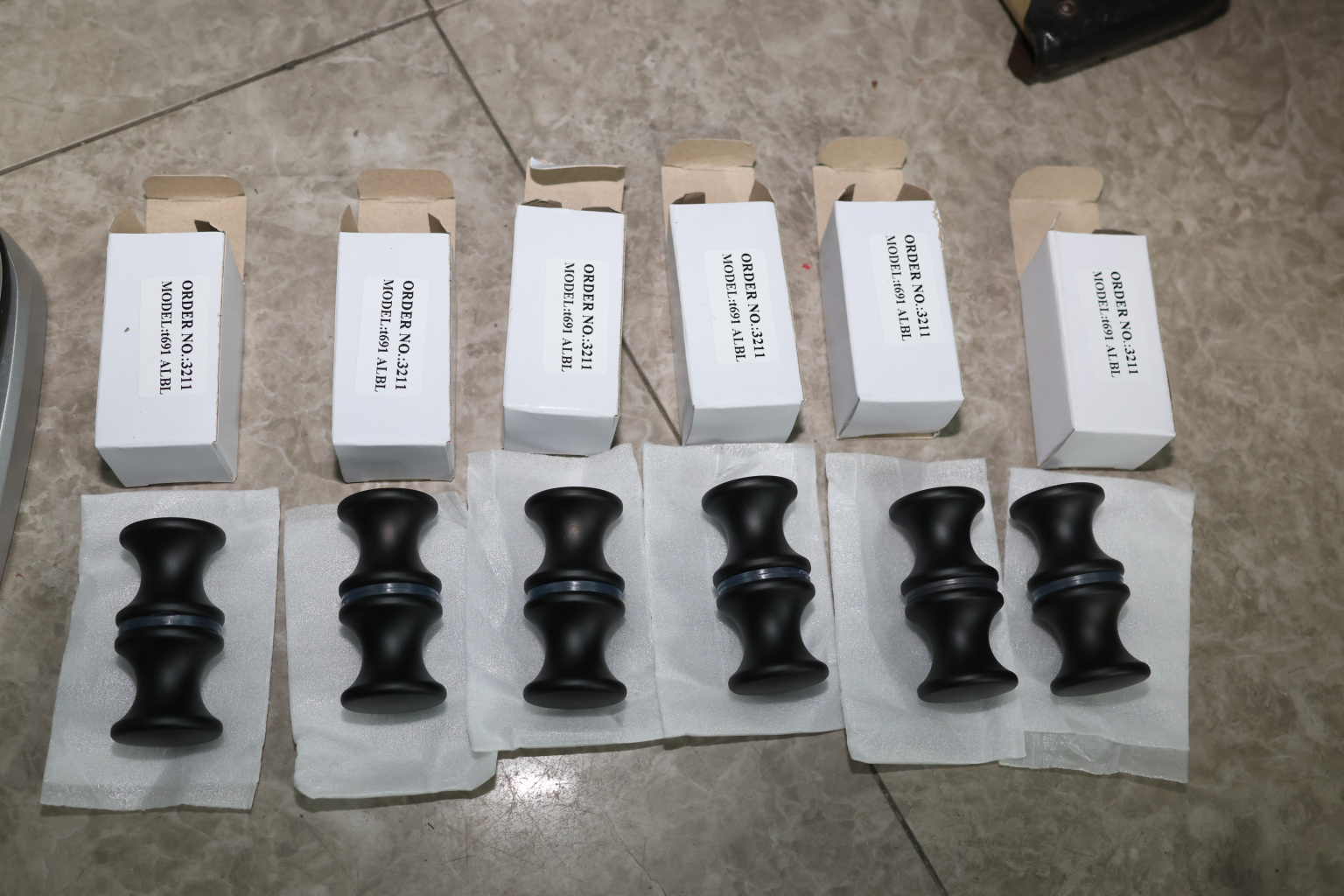 Дверная ручка "кноб", материал алюминий, цвет черный t691 ALBL. Отверстие в стекле - 12 мм