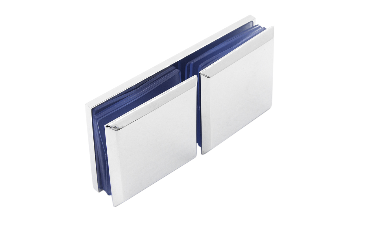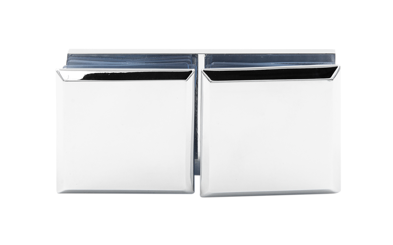 Коннектор для душевой кабины стекло-стекло 180°, 45х45 мм. Материал детали - латунь-хром, поверхность - полированная