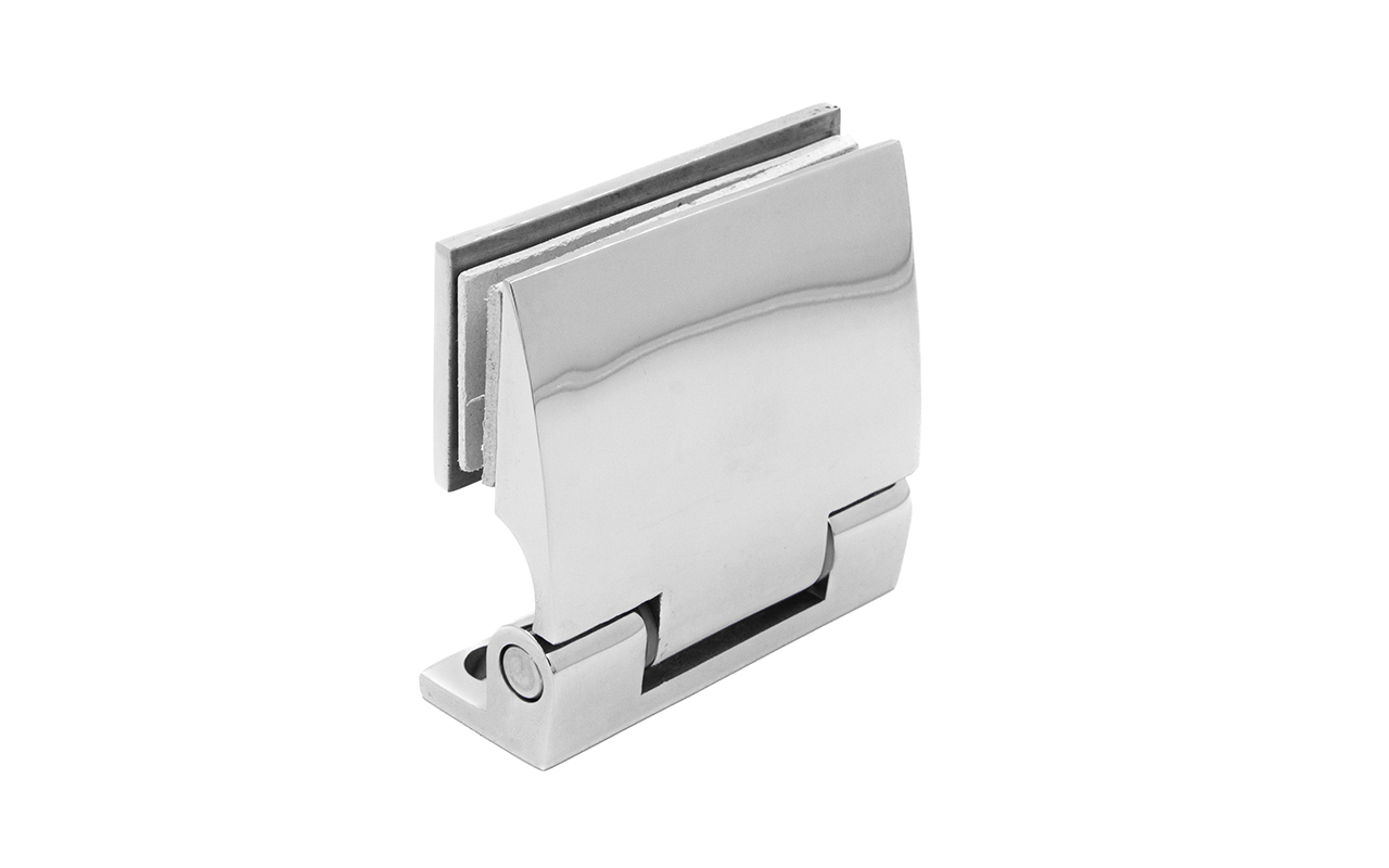 Петля односторонняя стена-стекло 90° , без фиксации и самозакрывания, полированная. Выдерживает нагрузку 35 кг на две петли. Материал - нержавеющая сталь.