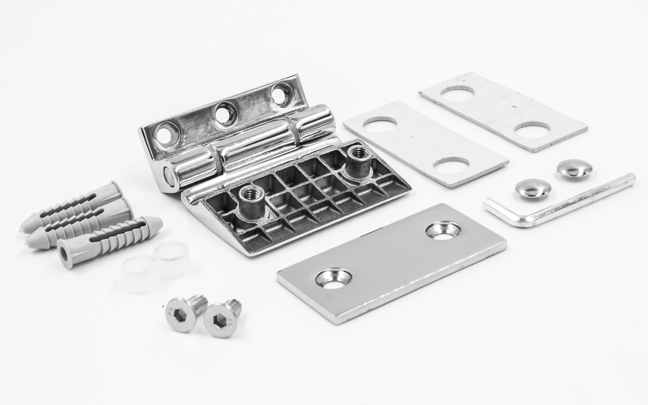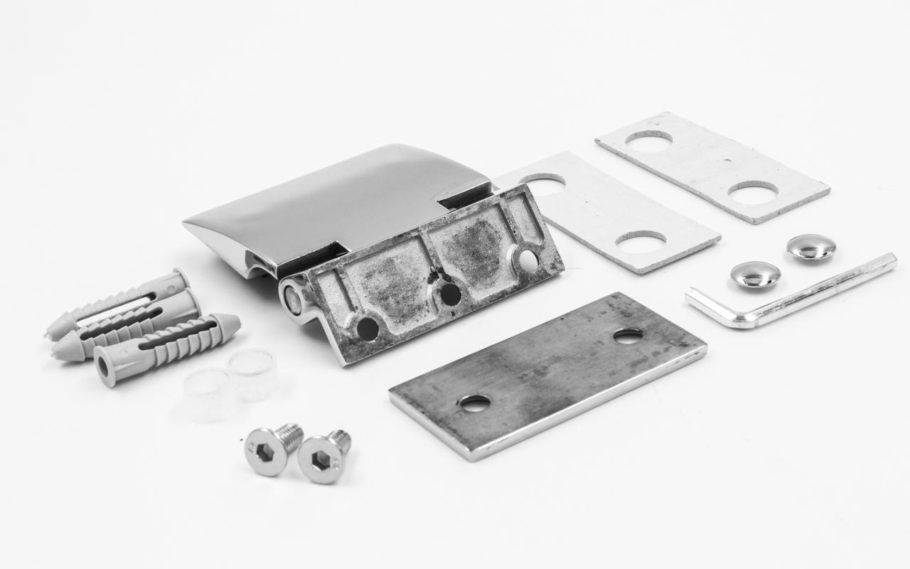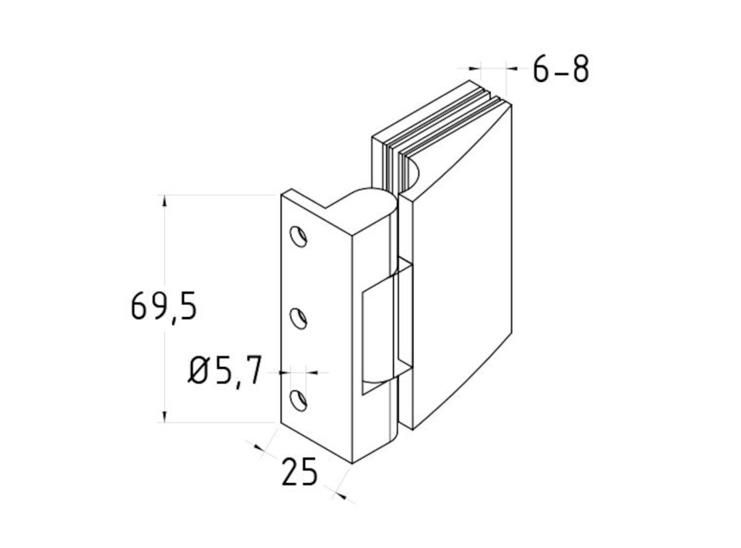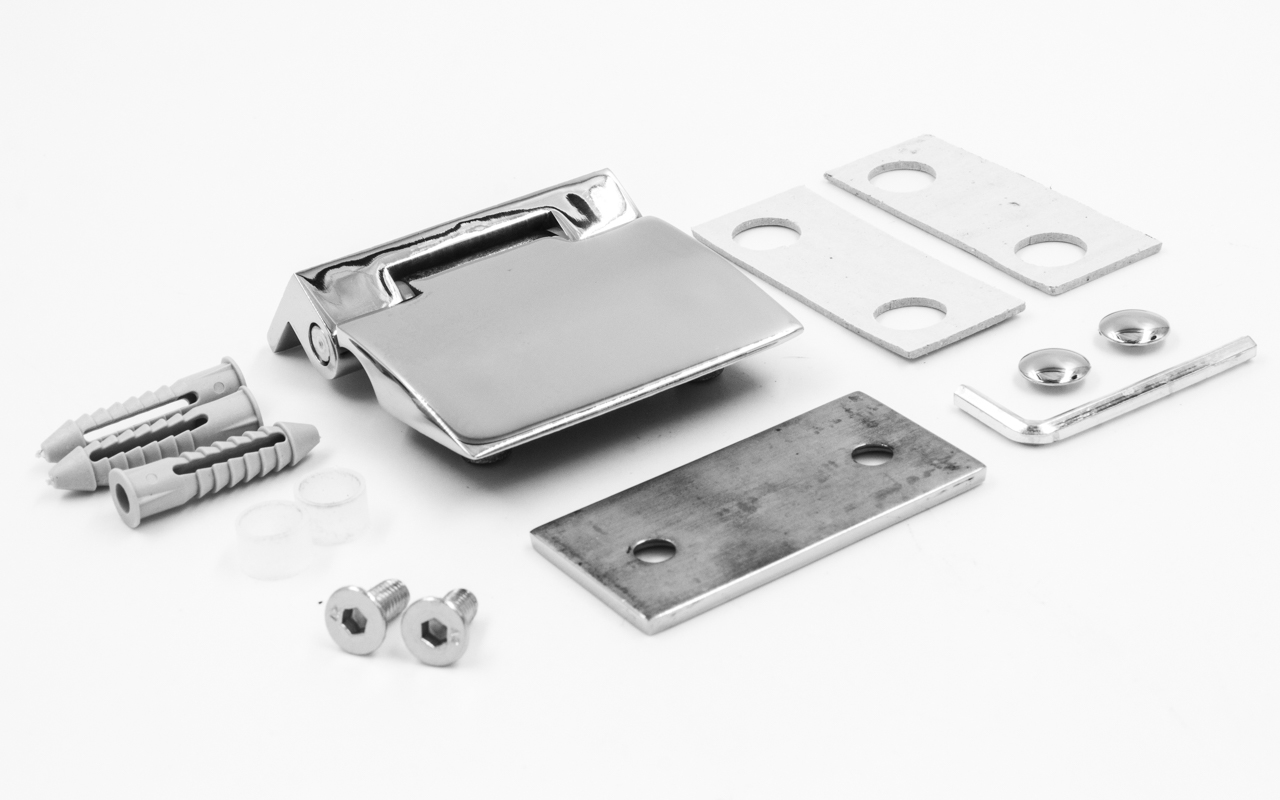 Предназначена для крепления стеклянной двери на стену душевой перегородки под углом 90º.