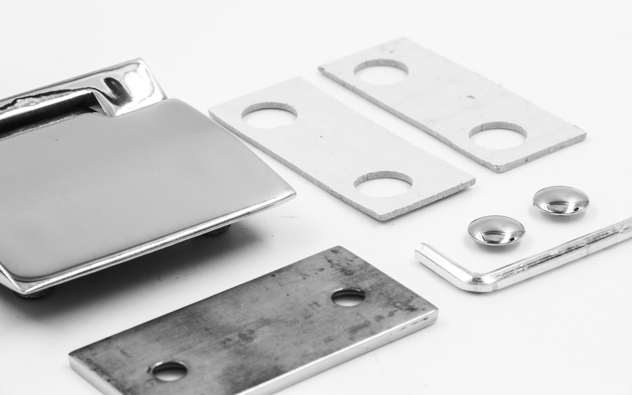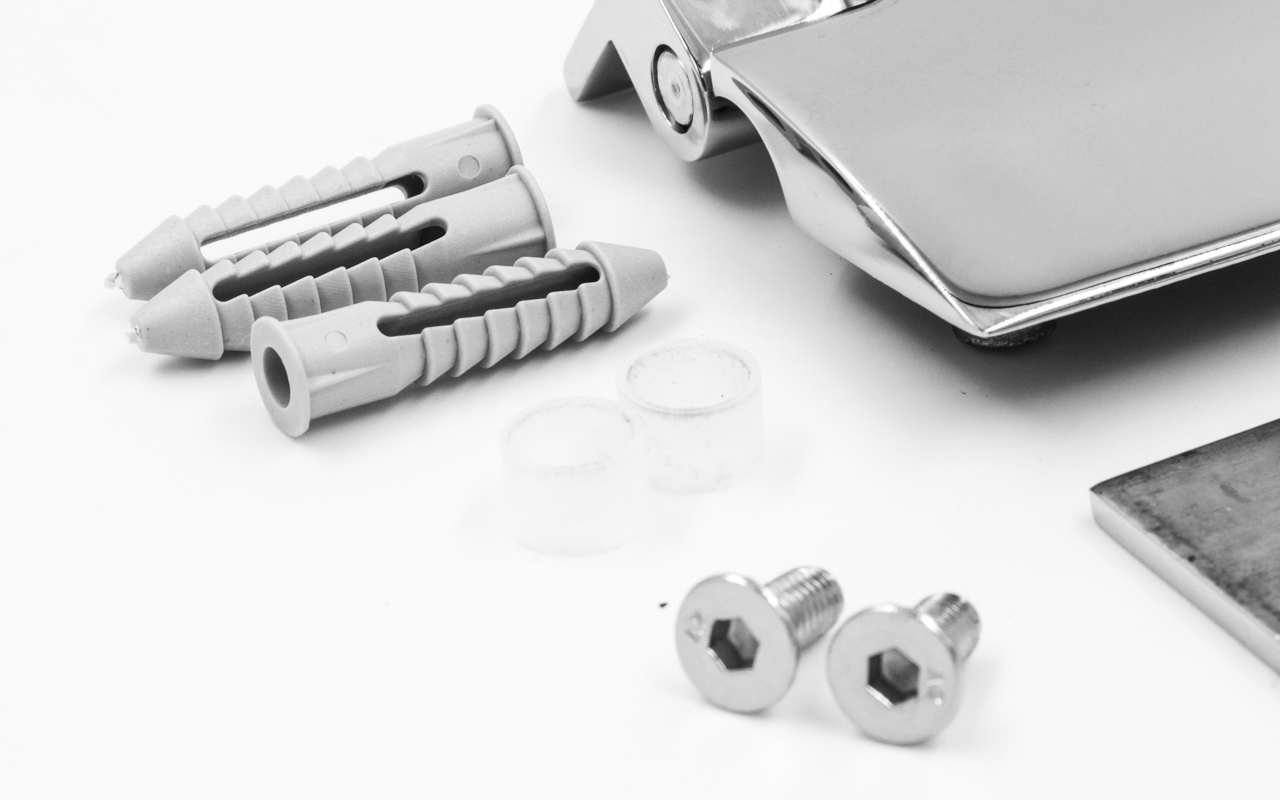 Стекло с готовым вырезом 14, фиксируется с помощью саморезов или винты со шляпками, закручивая используется уплотнитель. Также, если между стена-стекло остаётся щель, то используем уплотнитель.