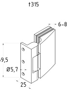 Петля стена-стекло 90°, односторонняя, без реза, нерж., полир. t315 PSS
