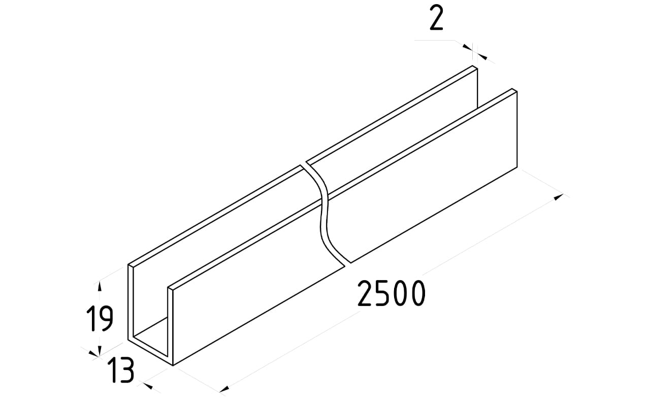 П-образный профиль 19x13, L=2500, алюминий анодированный в черный глянцевый