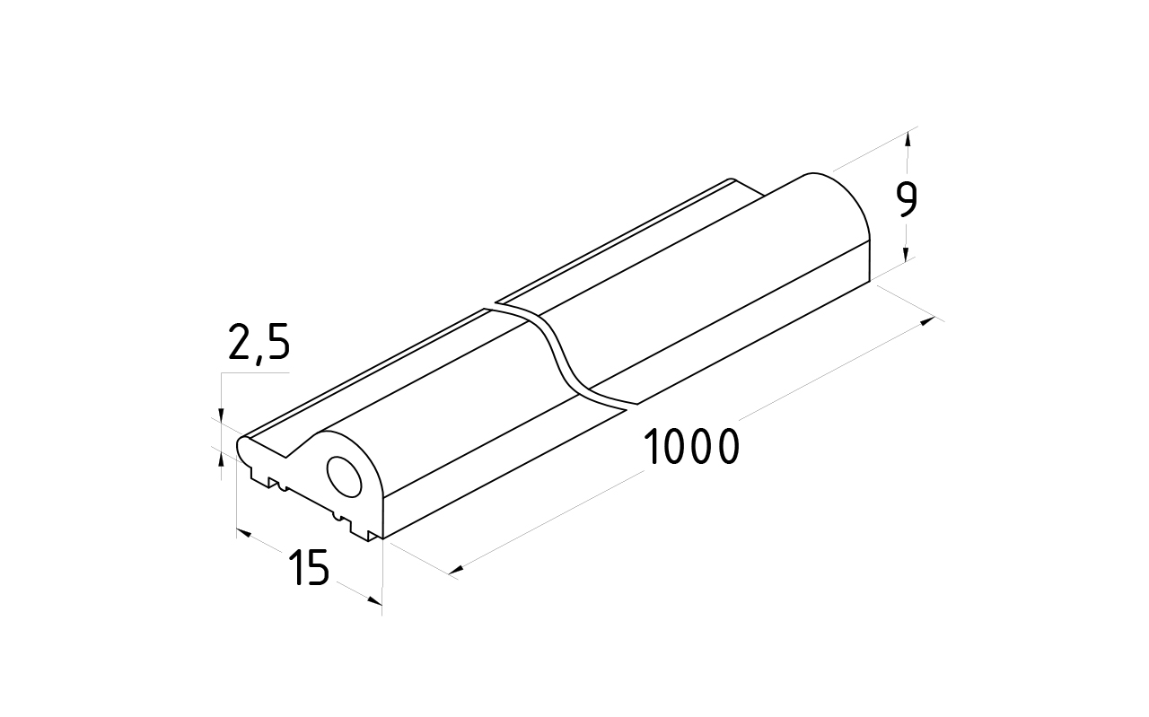 Порог для душевых кабин, длина 1000 мм. Материал - алюминий, поверхность - химическая полировка