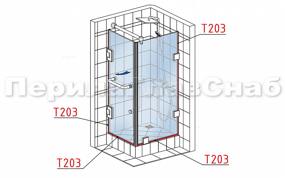 Комплект уплотнителей для стекла в душевую кабину (2 шт.), стекло-стекло 8 мм, с магнитом 90°/180°, 2200 мм t210 купить в Новосибирске