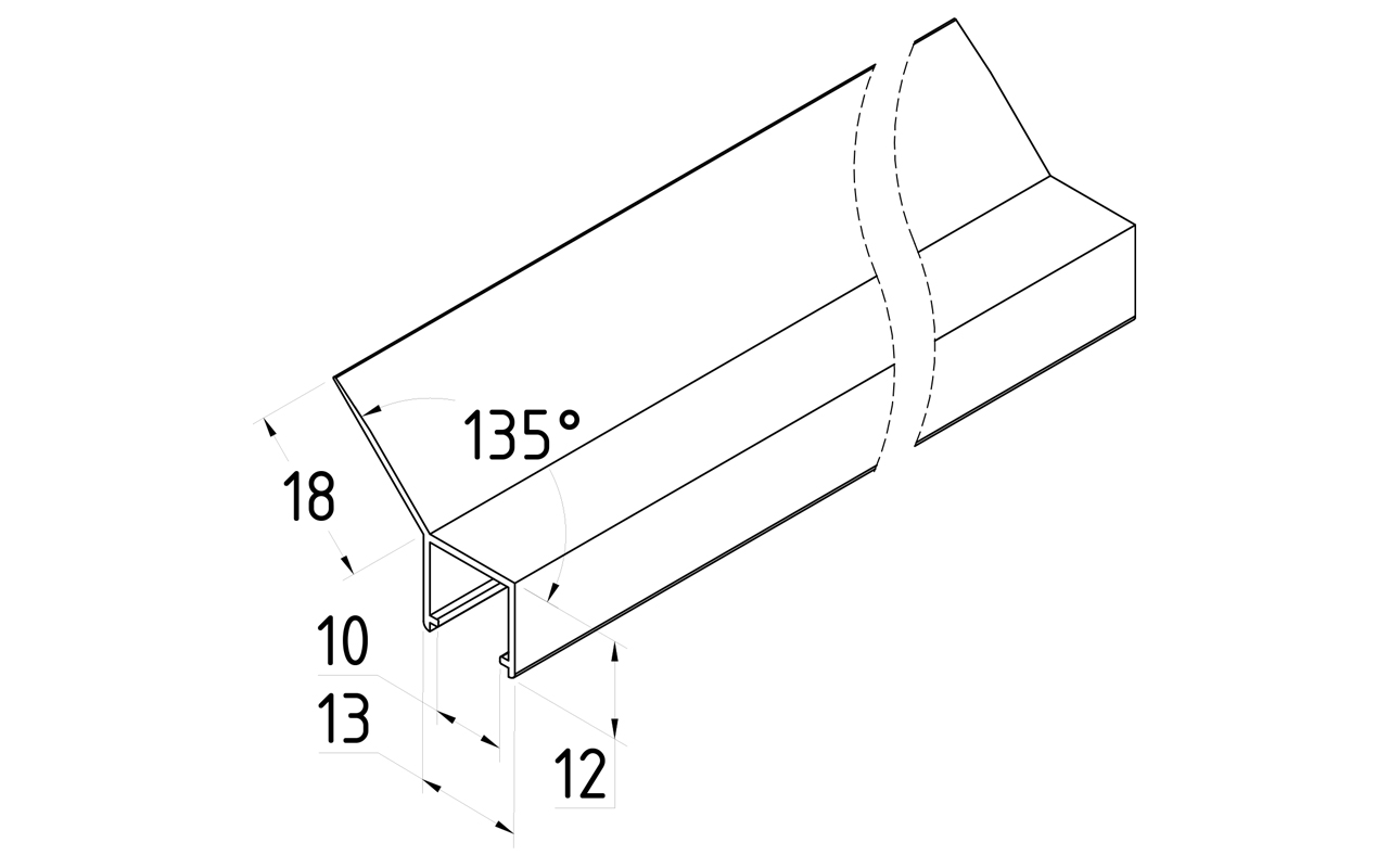 Уплотнитель для стекла в душевую кабину 10 мм, 135°, стекло-стекло 2200 мм t223
