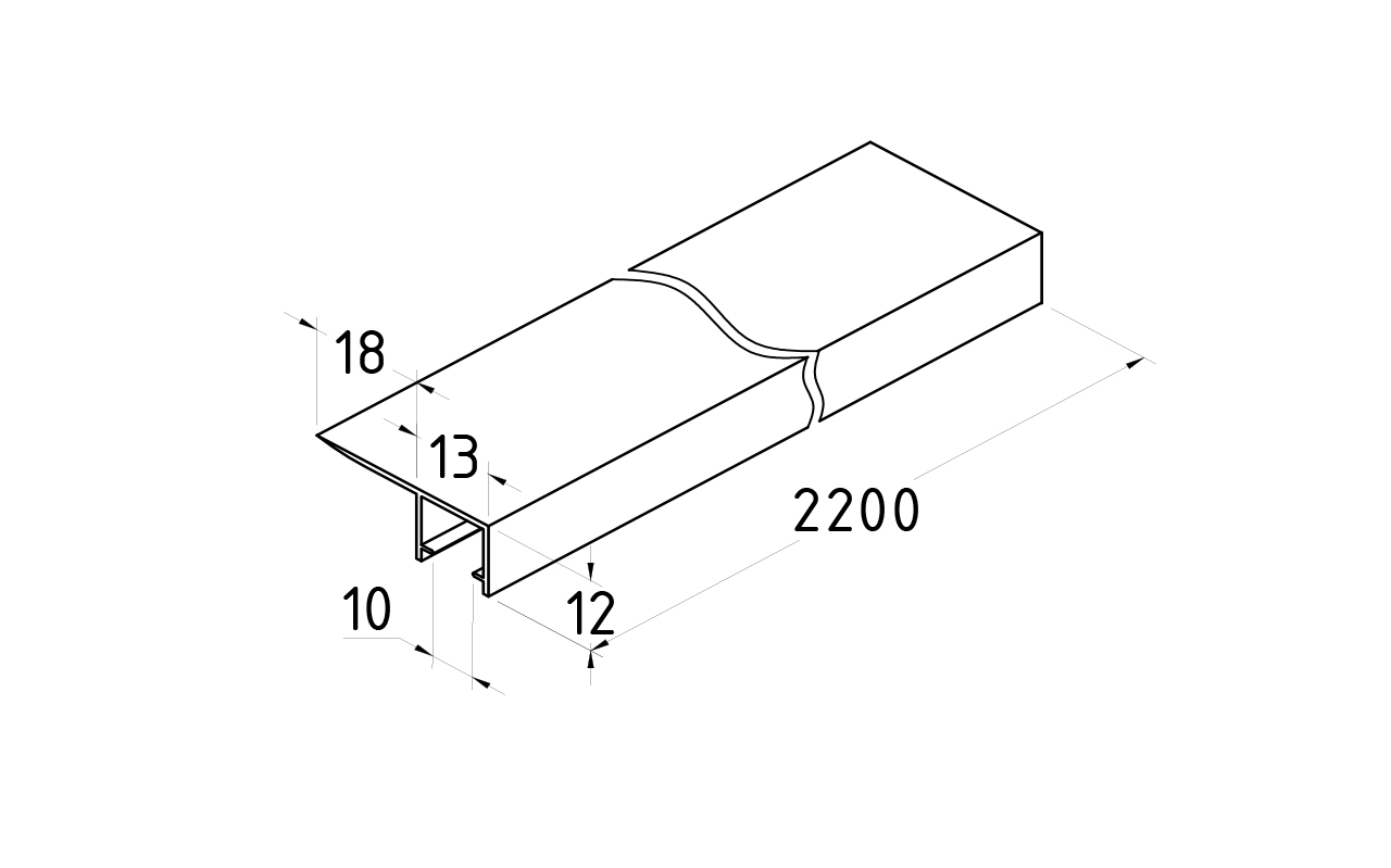 П-образный профиль 19x13, L=2200, под стекло 8 мм, алюминий анодированный в черный глянцевый t756-1 AND BL