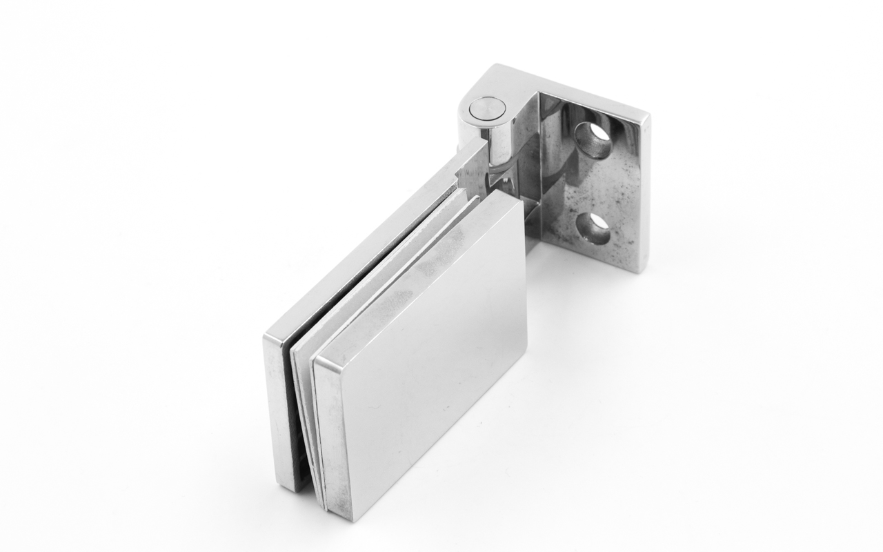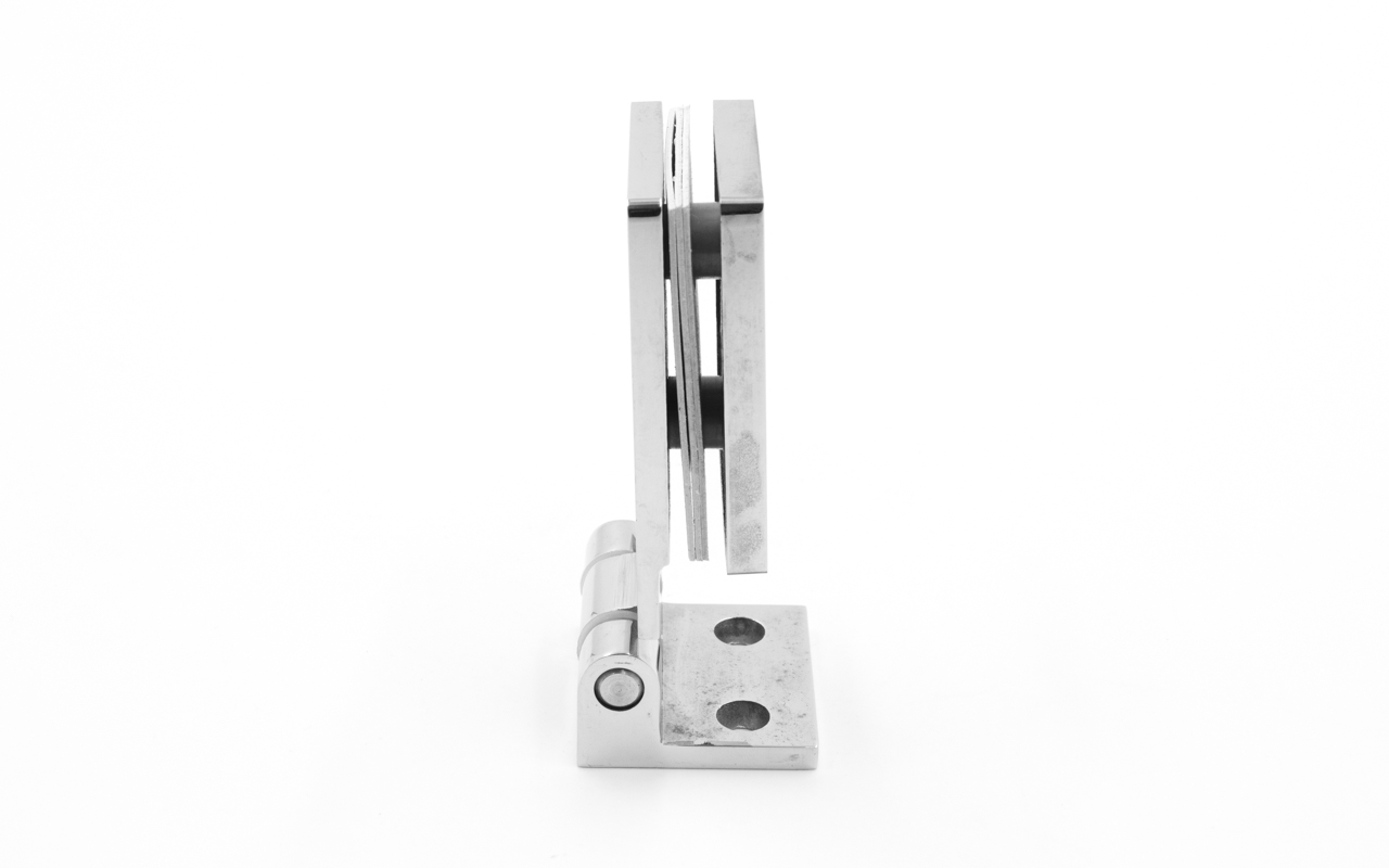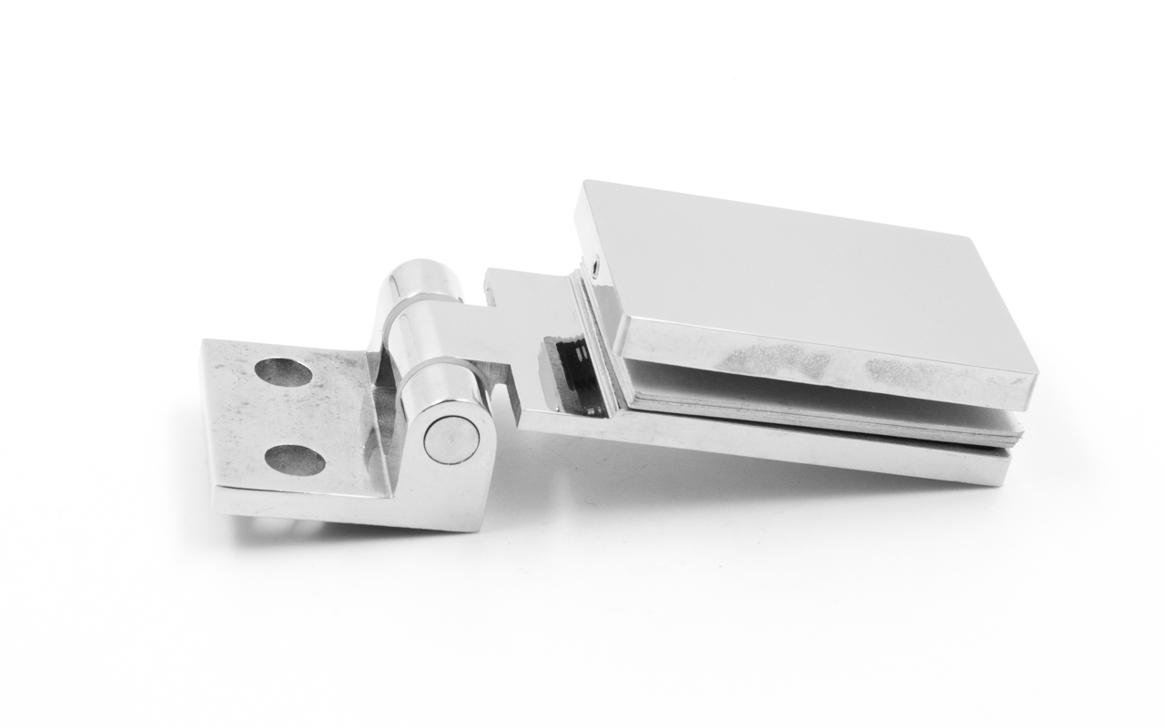 Петля для душевой кабины стена-стекло, поверхность- полированная, выдерживает нагрузку 35 кг на две петли, марка стали- AISI 304.