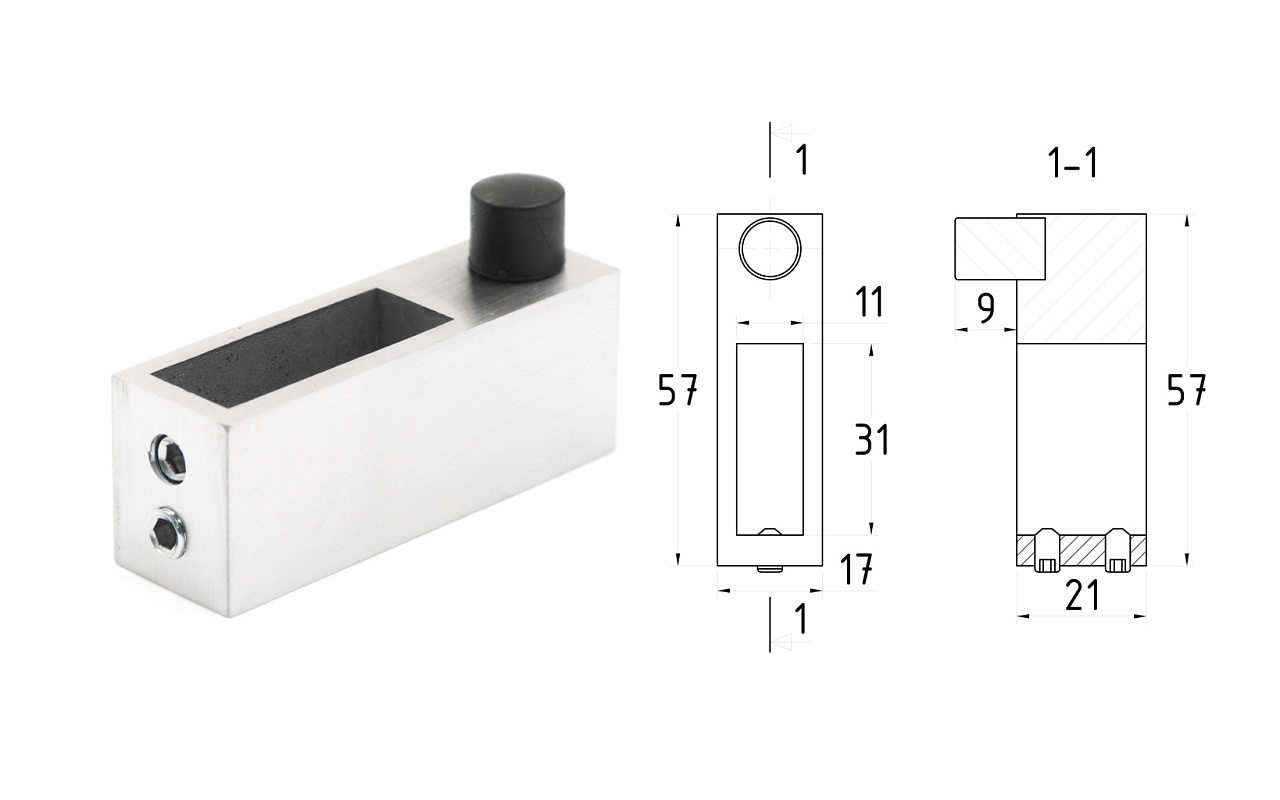 Направляющая для стеклянной двери, нержавеющая сталь AISI 304, шлифованная t834 SSS купить в Новосибирске