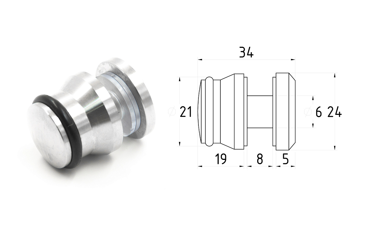 ролик (2 шт.), крепеж стекла к трубе (2 шт.), крепеж направляющая (2 шт.), напольная направляющая (1 шт.), торцевое крепление трубы к стене (2 шт.), стопор (2 шт.), дверная ручка (1 шт.)