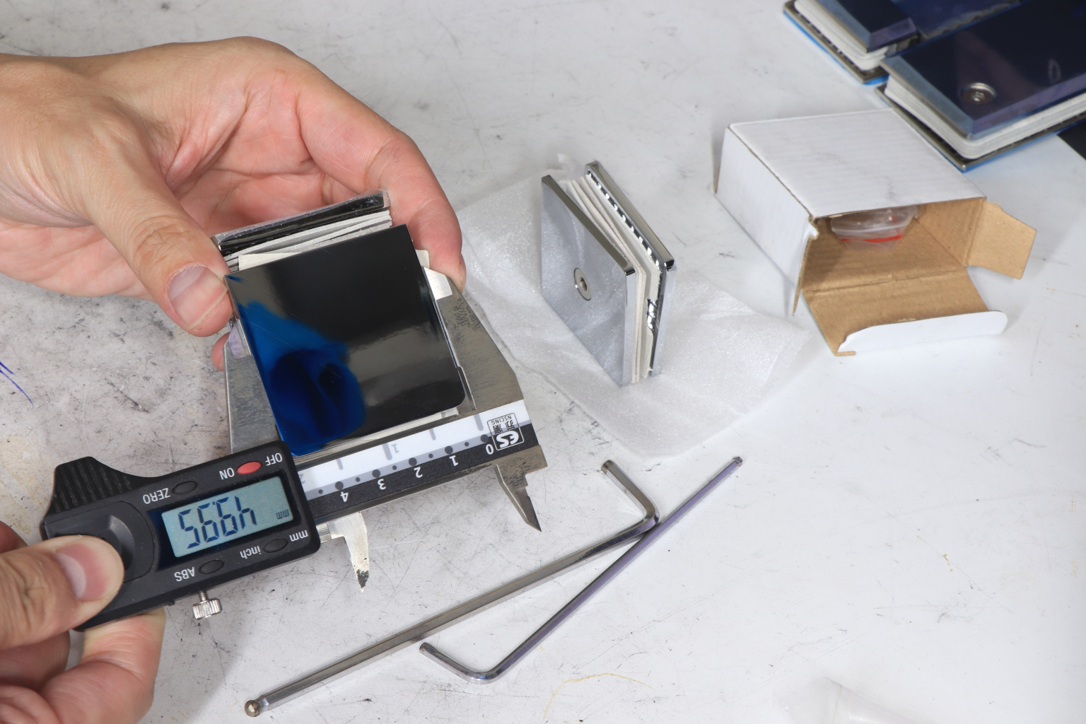 Коннектор для душевой кабины стекло-стекло 90°, 45х45 мм. Материал - латунь-хром, поверхность - полированная