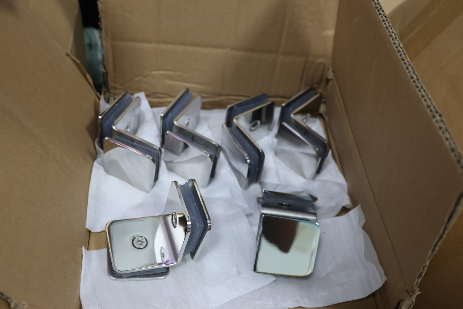 Коннектор для душевой кабины стекло-стекло 90° 45х45 мм, полированный. Марка стали - AISI 304