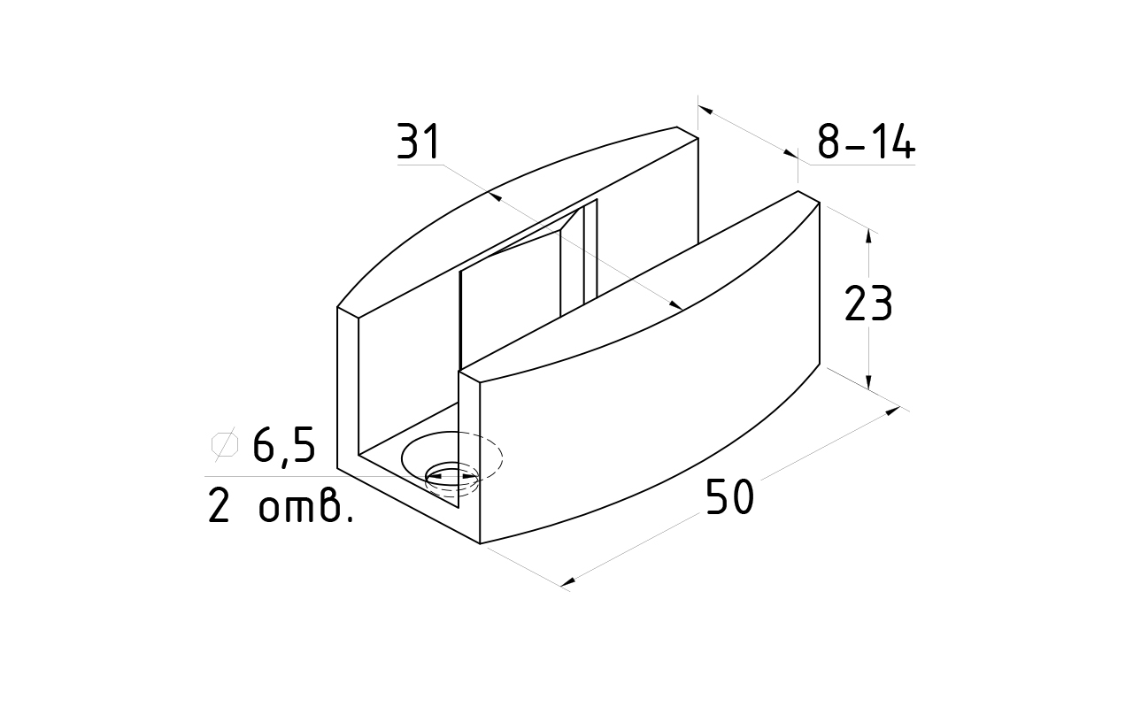Направляющая для двери. Деталь шлифованная, сборная, для стекла 8-10 мм. Марка стали - AISI 304