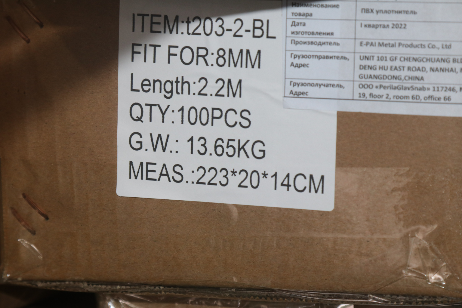 - Уплотнитель имеет исполнение черной поверхности, выполнен из материала ПВХ. Имеет П-образный профиль. Толщина одного типоразмера составляет – 2200 мм.