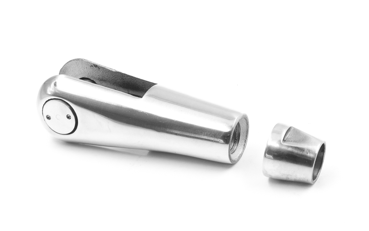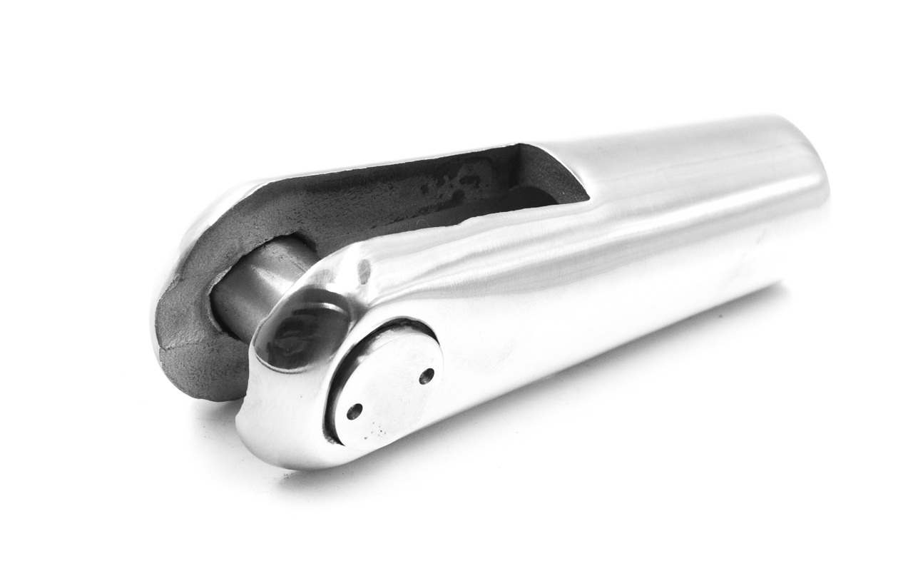 Наконечник состоит из тела, с технологическим отверстием с резьбой М16 и болта для соединения с серьгой или креплением к стене. Деталь выполнена из стали AISI 304. Длинна наконечника 138 мм. от начала ванты до середины держателя. Ширина 34 мм. Длинна паза 50 мм, ширина 15 мм. В пазе находится болт с внутренней резьбой диаметром 16,5 мм. Выдерживает максимальную нагрузку 1600 кг. Данный наконечник, как правило, покупают с деталью близнецом с противоположно направленной резьбой k661-L. Модификацию уточняйте у наших менеджеров. В качестве аналога можно рассмотреть наконечник k654-R.