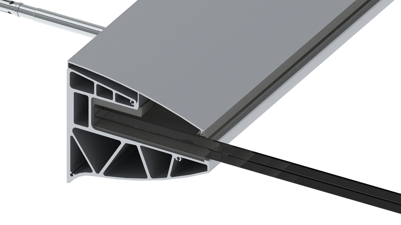 Алюминиевый зажимной профиль для монтажа козырьков без каркаса и стеклодержателей. Профиль крепится к стене и зажимает триплекс козырька.