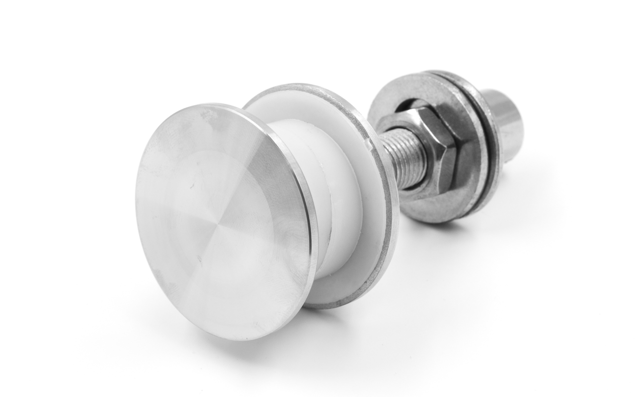 Рутель для вантового крепления козырьков, регулируемый, разборный, под стекло от 16 до 28 мм, полированный, диаметр внешнего кольца 52, шпилька М14 (aisi 304)