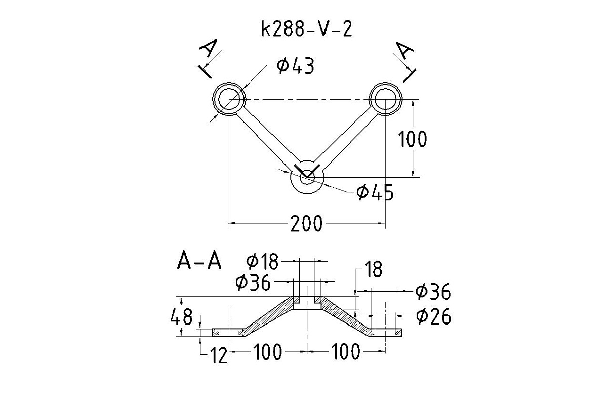 Cпайдер, литой,полированный V-200мм, AISI 304, 2х26х38, 1х18х36/40мм, нагрузки: 1кН, 2кН k288-V-2