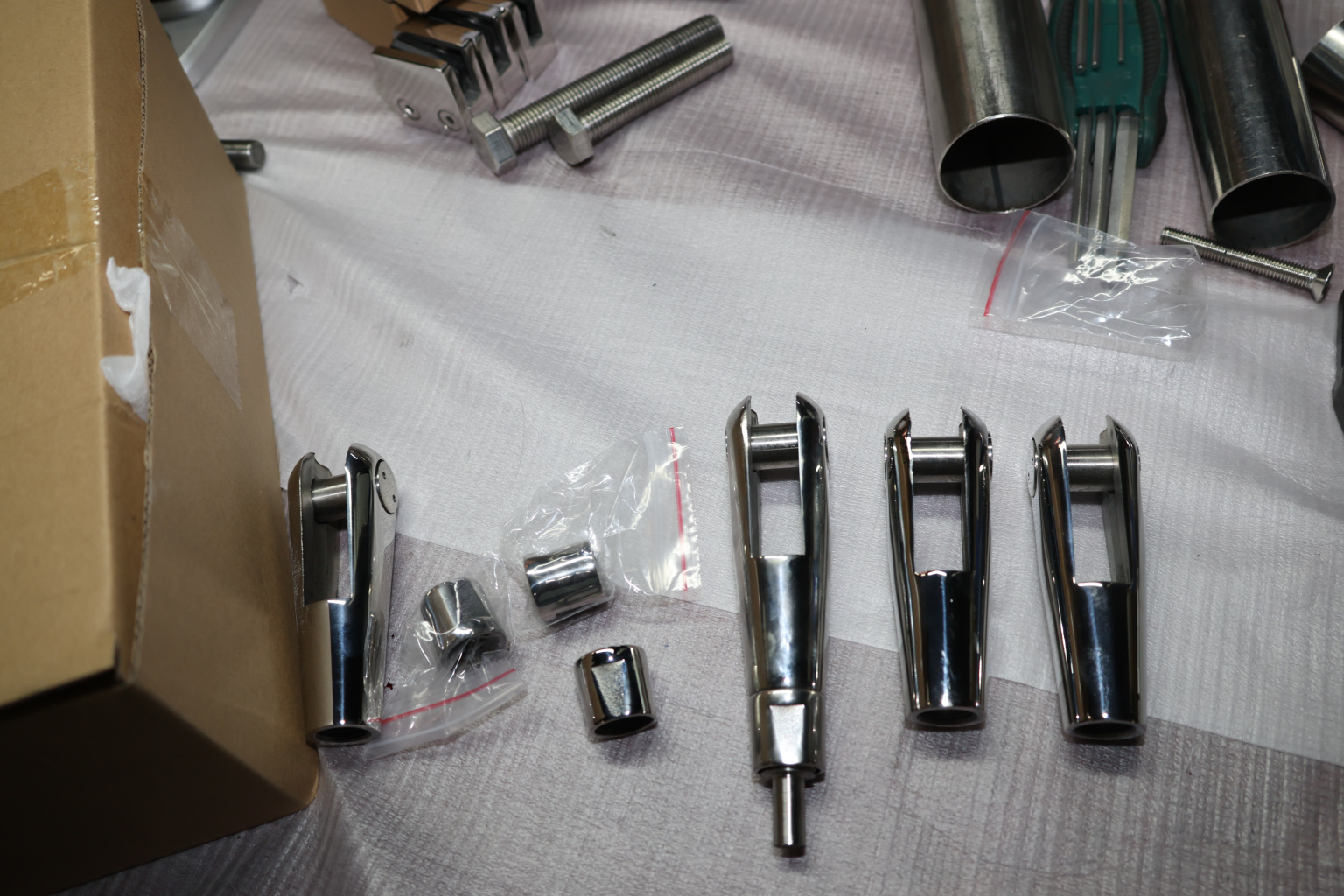 для крепления к серьге. Деталь выполнена из стали AISI 304. Длинна наконечника 138 мм от начала ванты до середины фиксатора. Ширина 34 мм. Длинна паза в месте расположения фиксатора 50 мм, а ширина 15 мм. Выдерживает