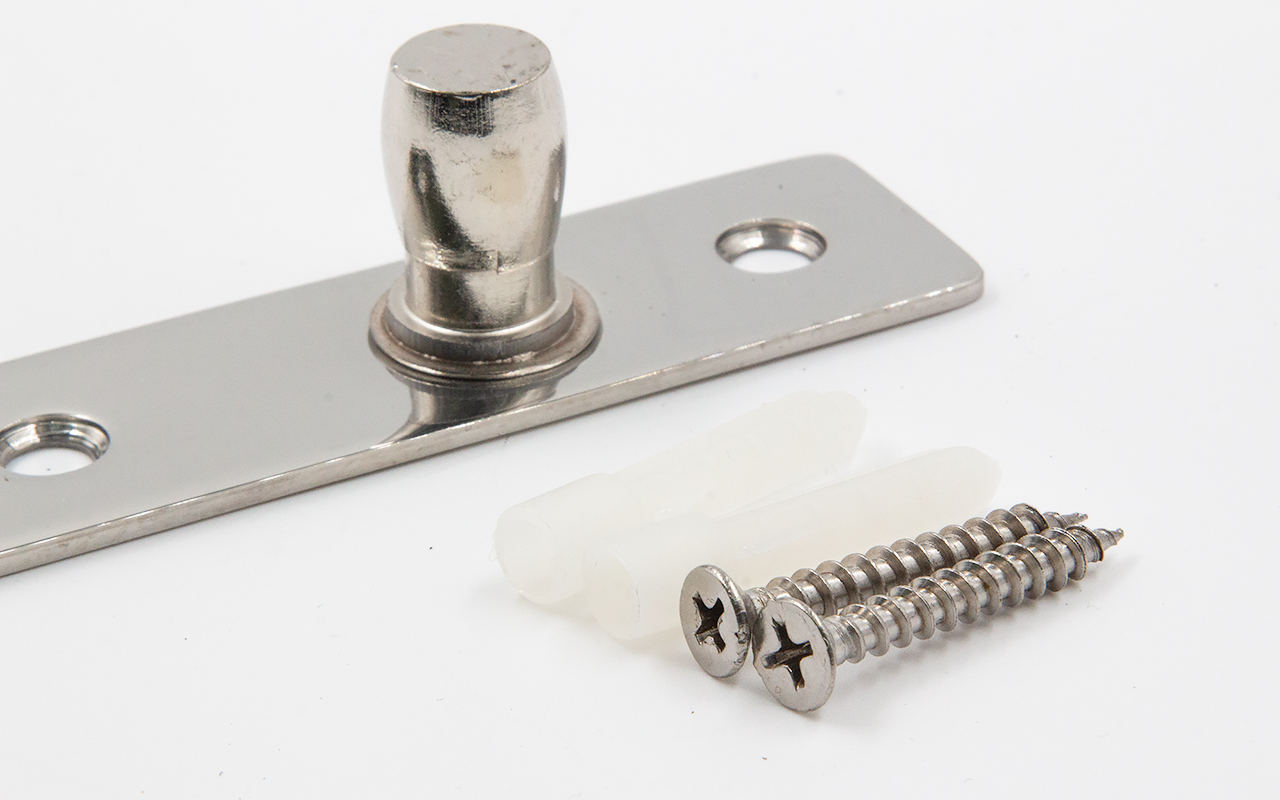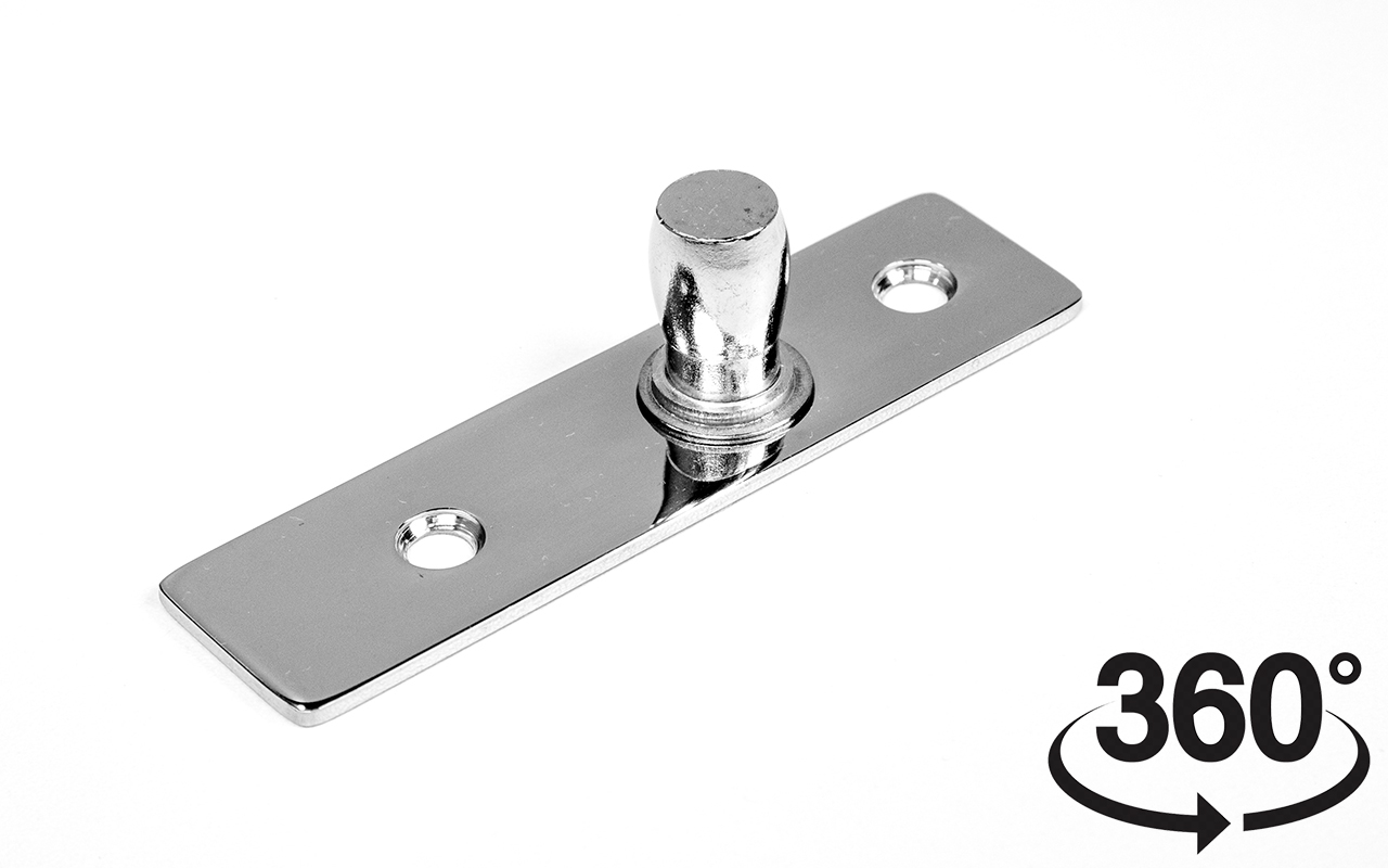 Ось верхняя, полированная, марка стали AISI 304. Представляет собой верхнюю ось для стеклянной маятниковой двери без фрамуги.