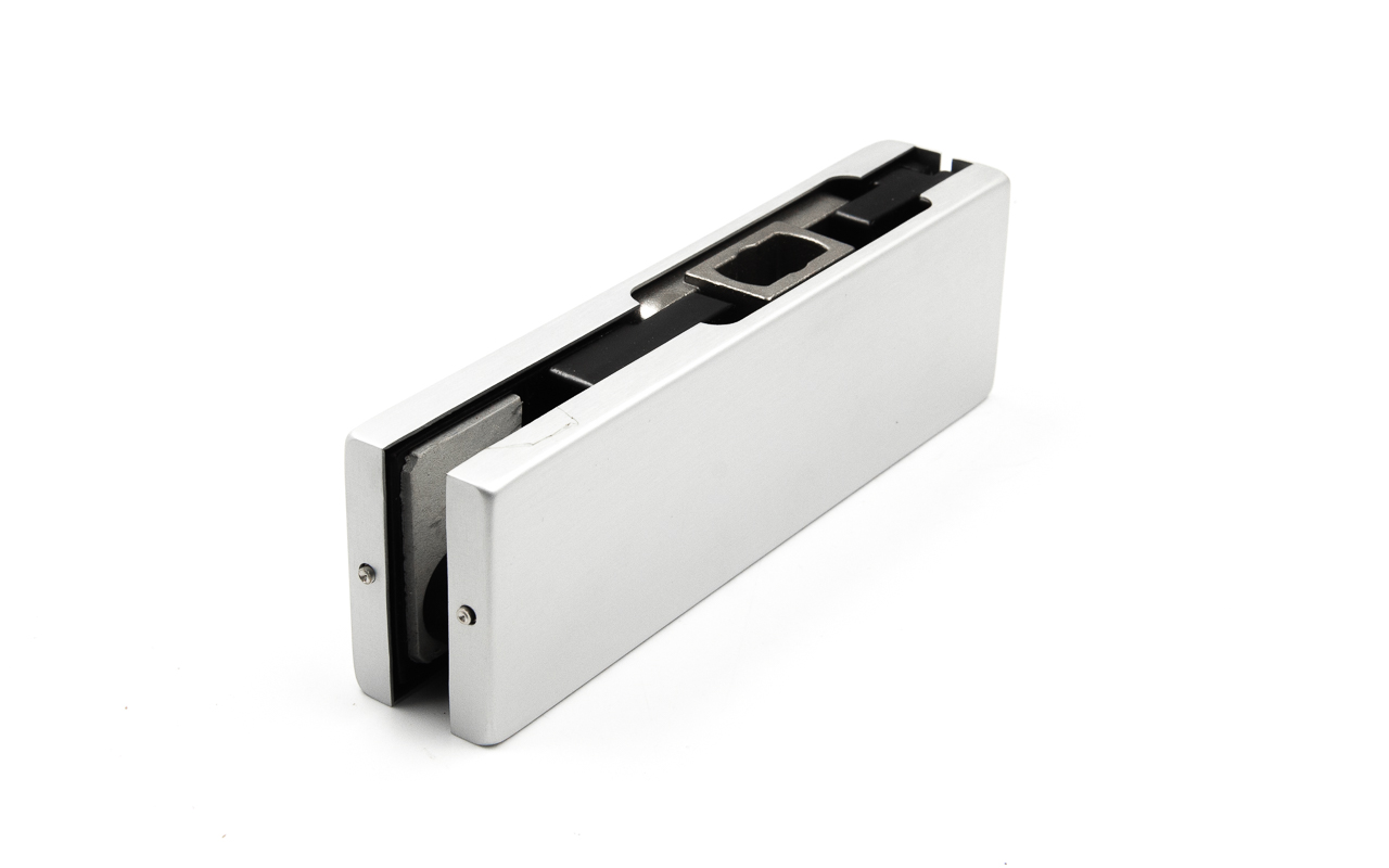Сбоку нажимаем на крепления крышек и снимаем. Отвинчиваем винты, и фиксируем фитинг в подготовленный вырез в стекле. Далее закручиваем и фиксируем обратно крышки.