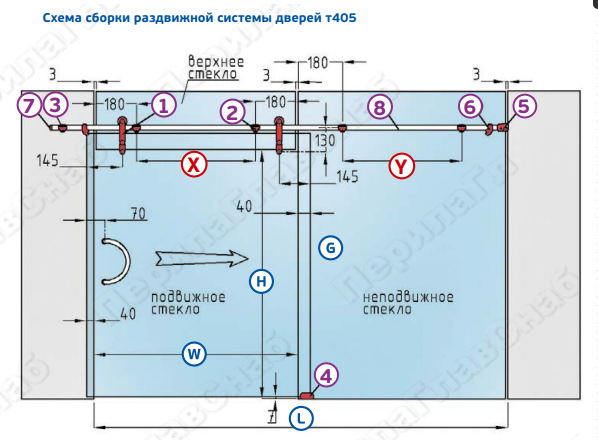 Схема сборки раздвижной системы дверей t405