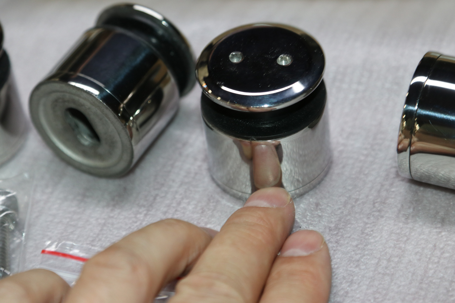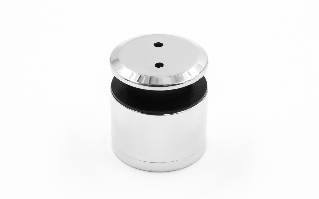 Стеклодержатель Ø50х10х18, шпилька М16х205 мм, для стекла 8-40 мм, AISI (201), с возможностью регулировки выноса до 65 мм, для торцевого крепления стекла, полированный, литой k277-3 купить в Новосибирске