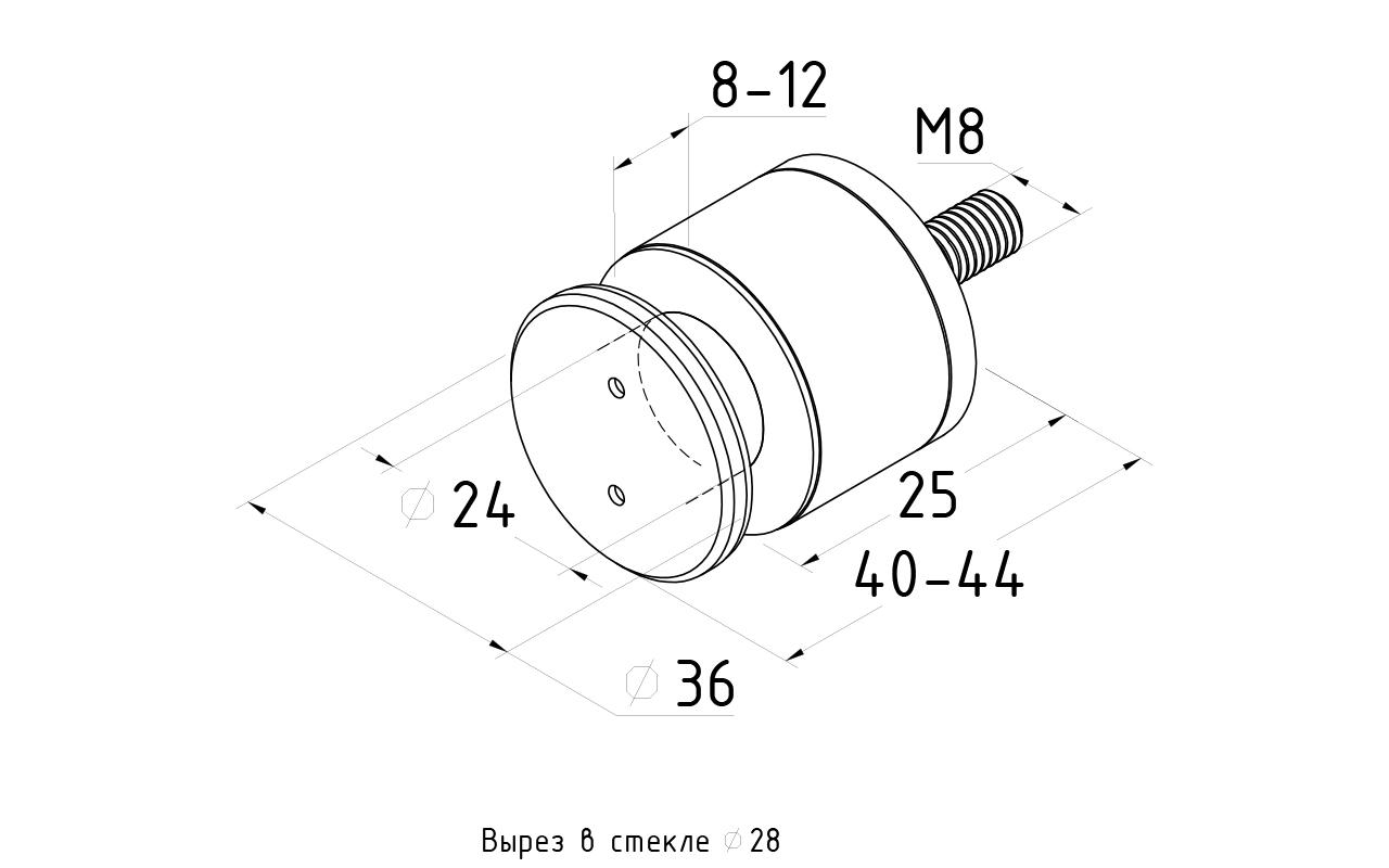 Ø36x28х40 мм отверстие в стекле 28 мм