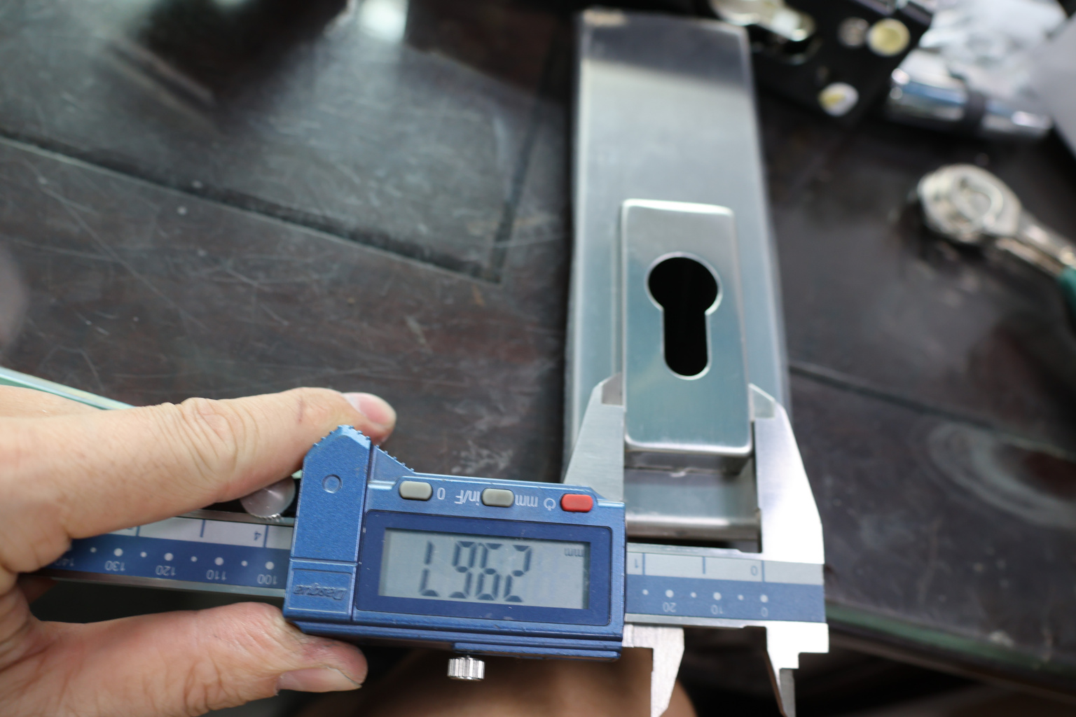Замок для стеклянной двери центральный с прямоугольным ригелем, шлифованный, вырез 13 t152 SSS