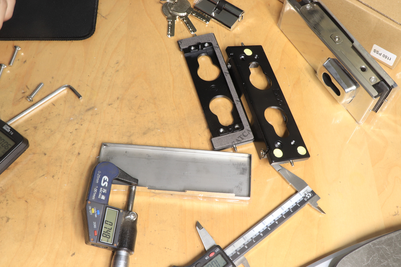 Сбоку нажимаем на крепления крышек и снимаем. Отвинчиваем винты, и фиксируем ответную часть замка в подготовленный вырез в стекле. Далее закручиваем и фиксируем обратно крышки.