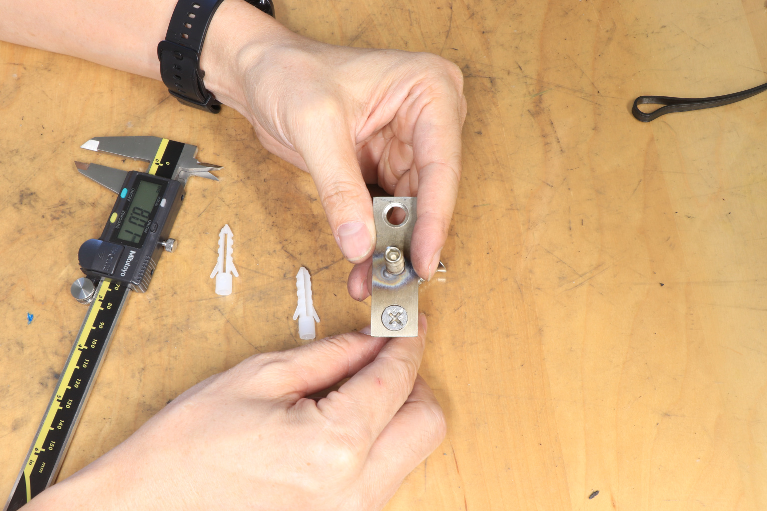 Коннектор разбирается на две половинки, основание металлической пластины крепится к стене на саморезы. Затем к нему прикладывается стекло со специальными полукруглыми вырезами, а далее второй половинкой стекло зажимается.
