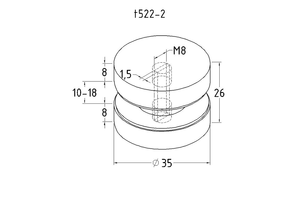 Коннектор для соединения стекол без вырезов (комплект 2 шпильки: 22мм и 28мм) , под стекло 10-18 мм, полированная t522-2 PSS