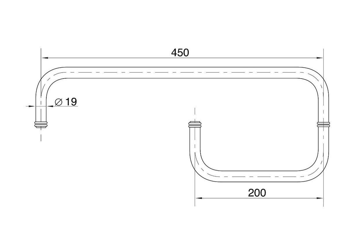 Дверная ручка-скоба 19х450х200 мм, черная, AISI 304