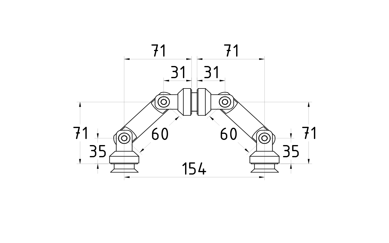 Крепление на три стекла, штанга 60 мм, под зенковку tt204-60 SSS