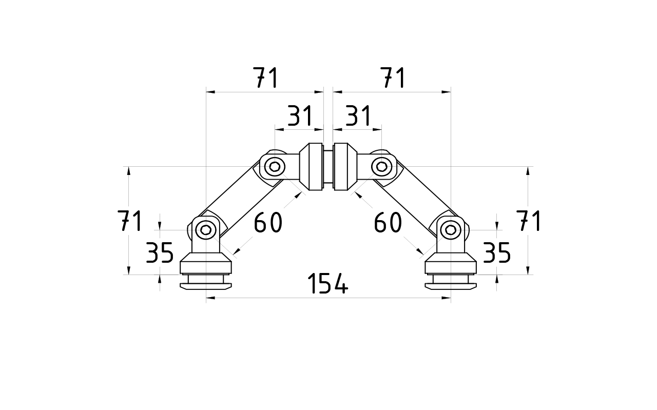 Крепление на три стекла, штанга 60 мм, без зенковки