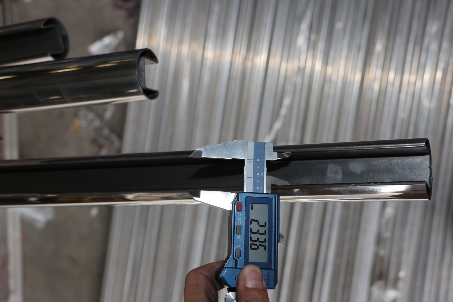 Труба Ø42.4 мм, с пазом 24х24, тройная полировка 800GRIT, (AISI 201) k820 купить в Новосибирске