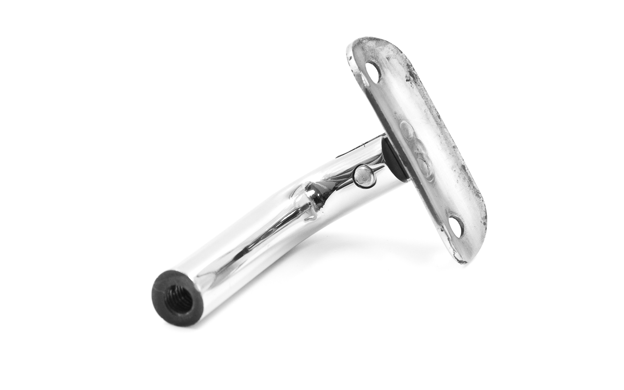 Это предельно экономичная и от того чрезвычайно выгодная модель выносного держателя бокового крепления поручня на круглую стойку. Легко монтируется как на традиционных ограждениях из нержавейки, так и на сборных ограждениях пандусов для инвалидных колясок. Допускается монтаж к стойке насквозь, через шпильку М8. При этом ложемент поручня регулируемый по углу наклона, что здорово облегчает жизнь монтажникам на работе с наклонными маршами. Эта тема становится особенно актуальной, когда монтируются ограждения для инвалидов на узких пандусах. Ведь в этом случае стойки можно поставить на пластины бокового крепления k056, не наклоняя стойки перпендикулярно линии марша, а устанавливая их вертикально.
