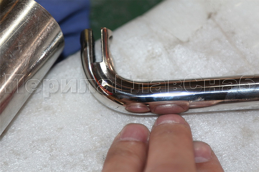Держатель поручня выносной на стойку, с регулируемым ложементом под трубу Ø38.1 мм, резьба внутренняя М8, полированный, (AISI 304) k261