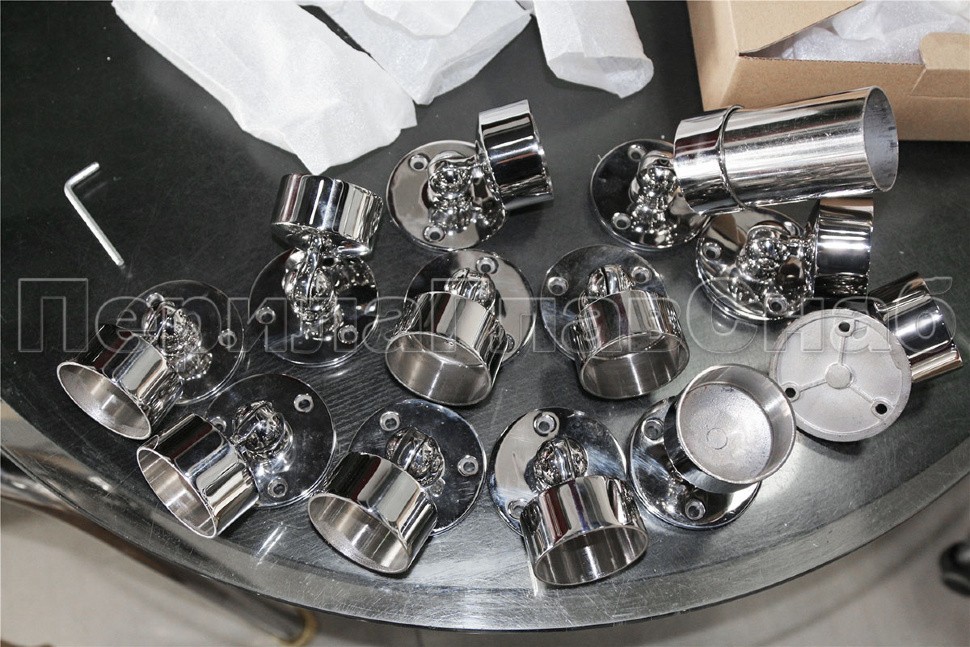 Когда перила приходят в стену под углом этот фланец с шарниром дает дополнительную прочную фиксацию поручня.