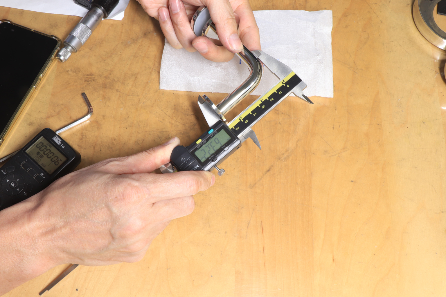 Для установки бокового держателя в стекле сверлится отверстие Ø17 мм, затем пристенок фиксируется затяжной гайкой в торце фланца. А сам поручень приваривается к загнутому наконечнику фитинга.