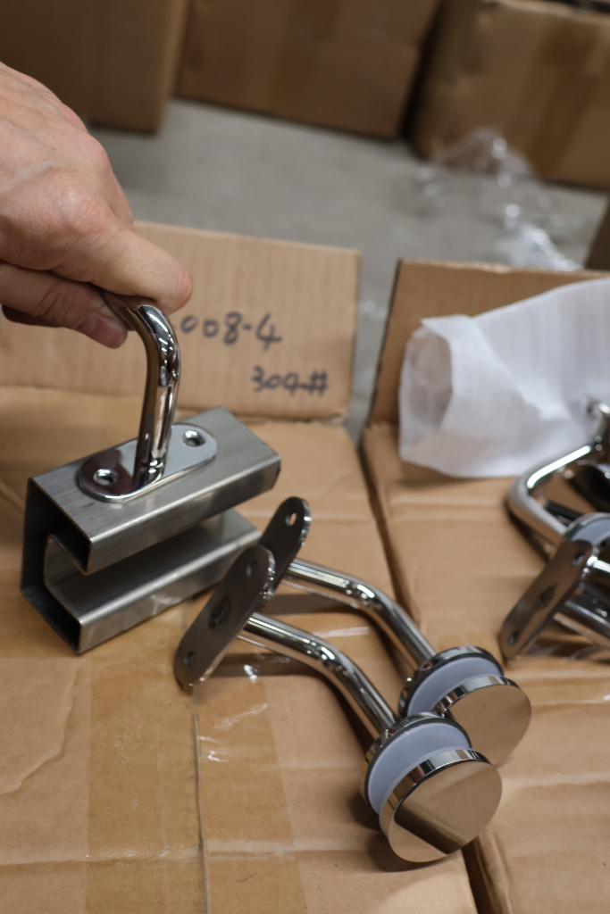 Применяется для бокового крепления нержавеющего поручня на стекло.