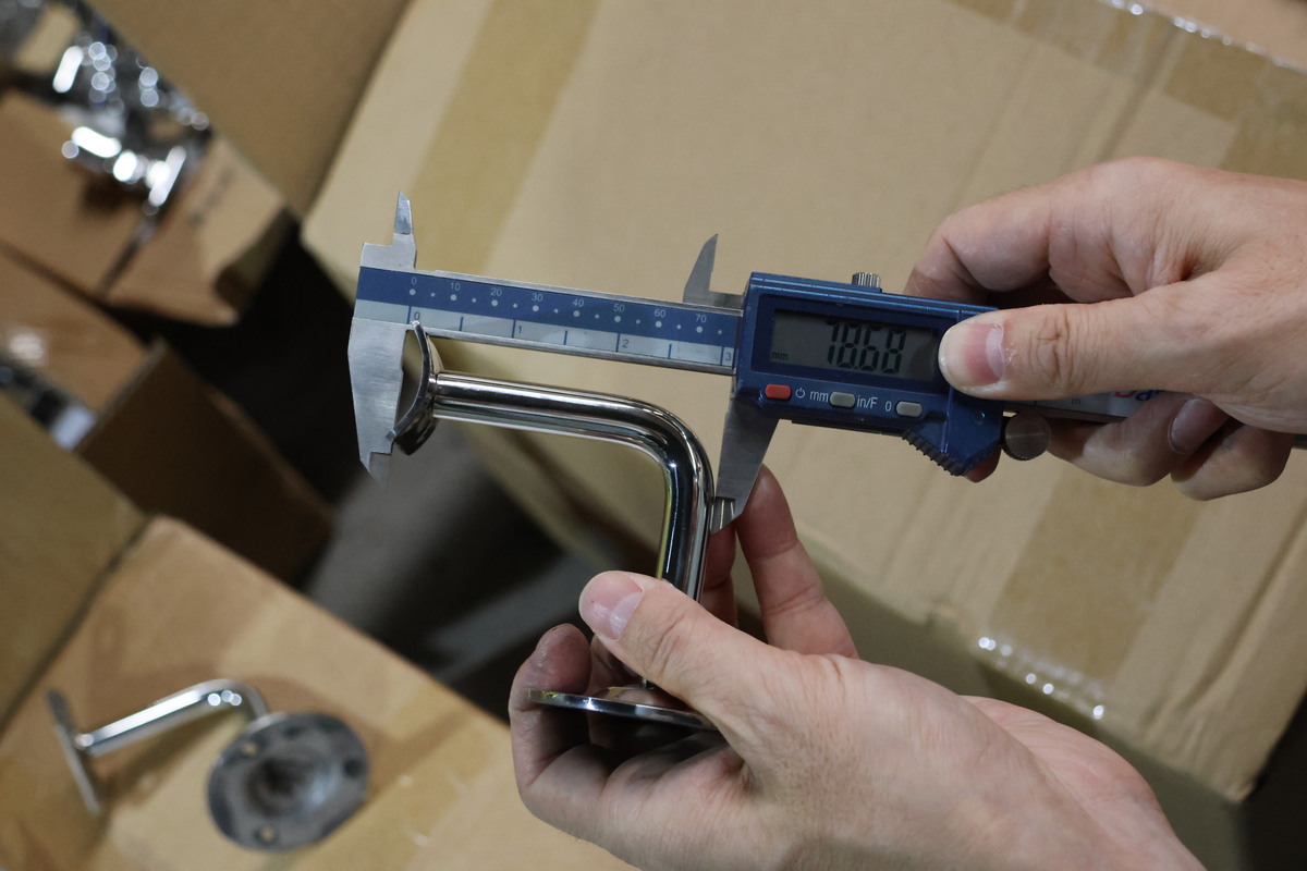 Благодаря оптимально подобранному выносу, пристенный поручень достаточно удален от поверхности стены, чтобы не задевать скользящей вдоль трубы поручня рукой идущего по лестнице человека. Но при этом поручень располагается близко к стене, дабы не сужать свободное пространство полезной ширины лестничного марша.