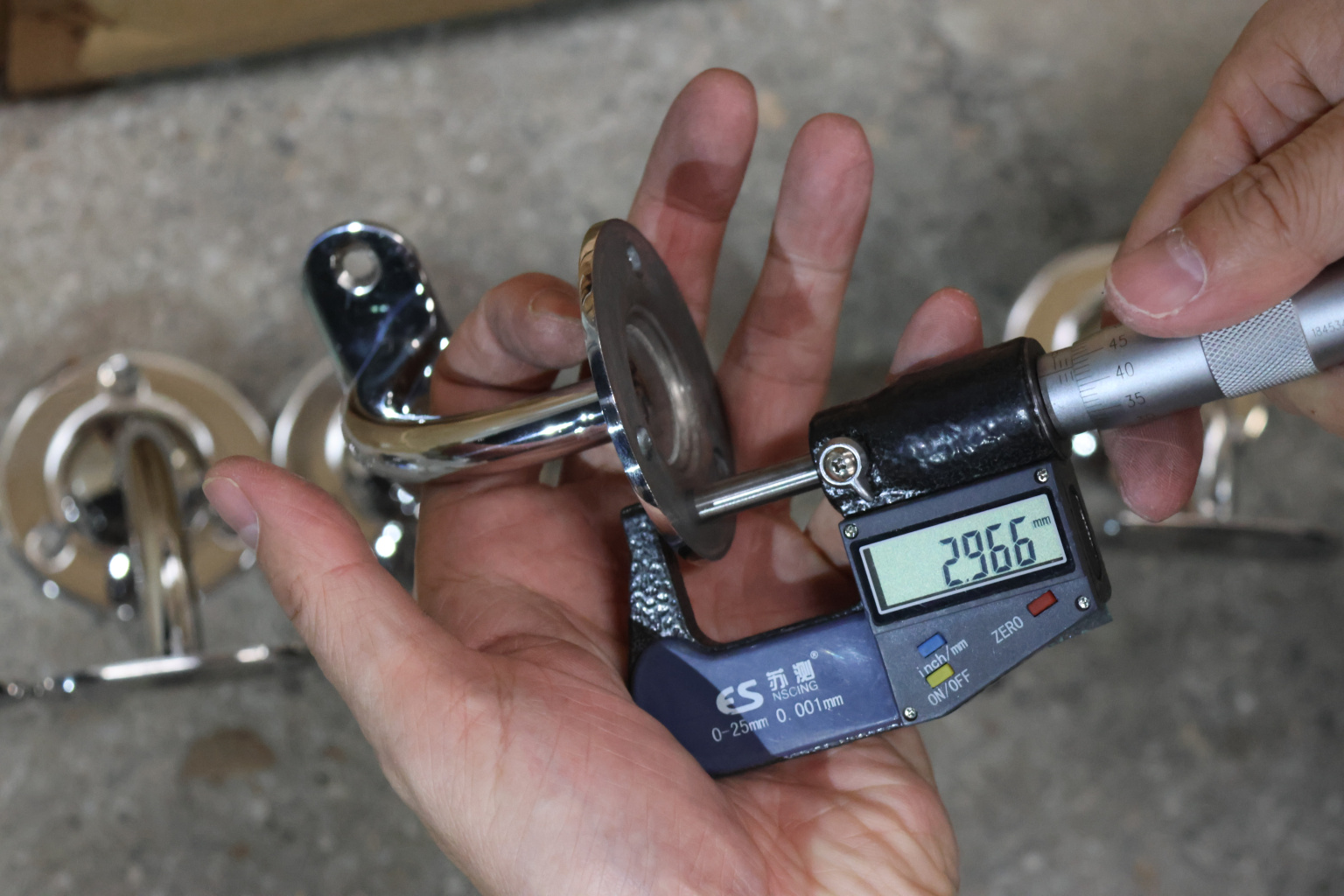 Пристенный поручень достаточно удален от поверхности стены - не будет задевать скользящей вдоль трубы поручня рукой идущего по лестнице человека. Не сужает свободное пространство полезной ширины лестничного марша - поручень располагается близко к стене.