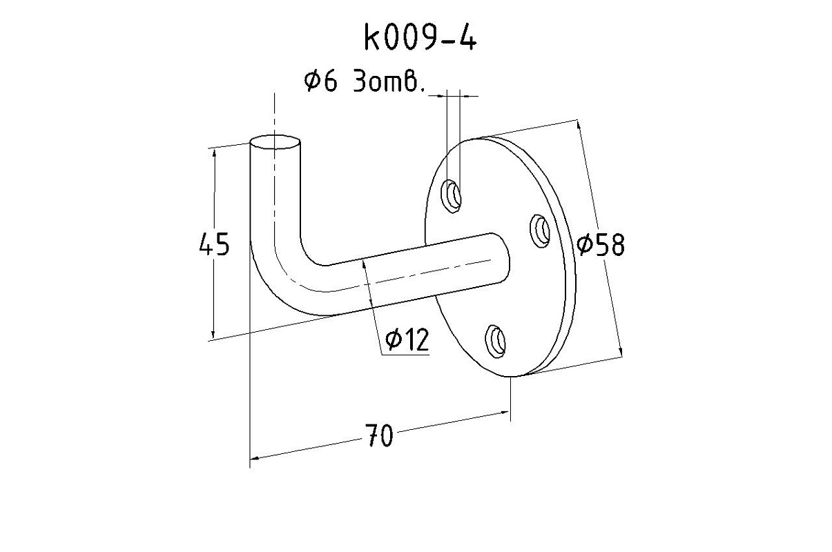 Кронштейн для перил к стене без ложемента, Ø60х3 мм k009-4