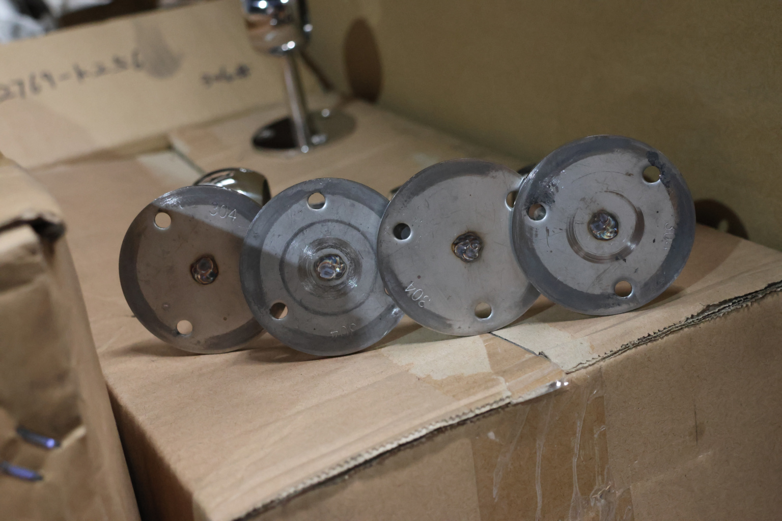 Держатель выносной с обхватом для трубы диаметром 38.1 мм. Три отверстия под саморез с потайной головкой 5.8 мм. Деталь полированная, сварная. Марка стали детали - AISI 304